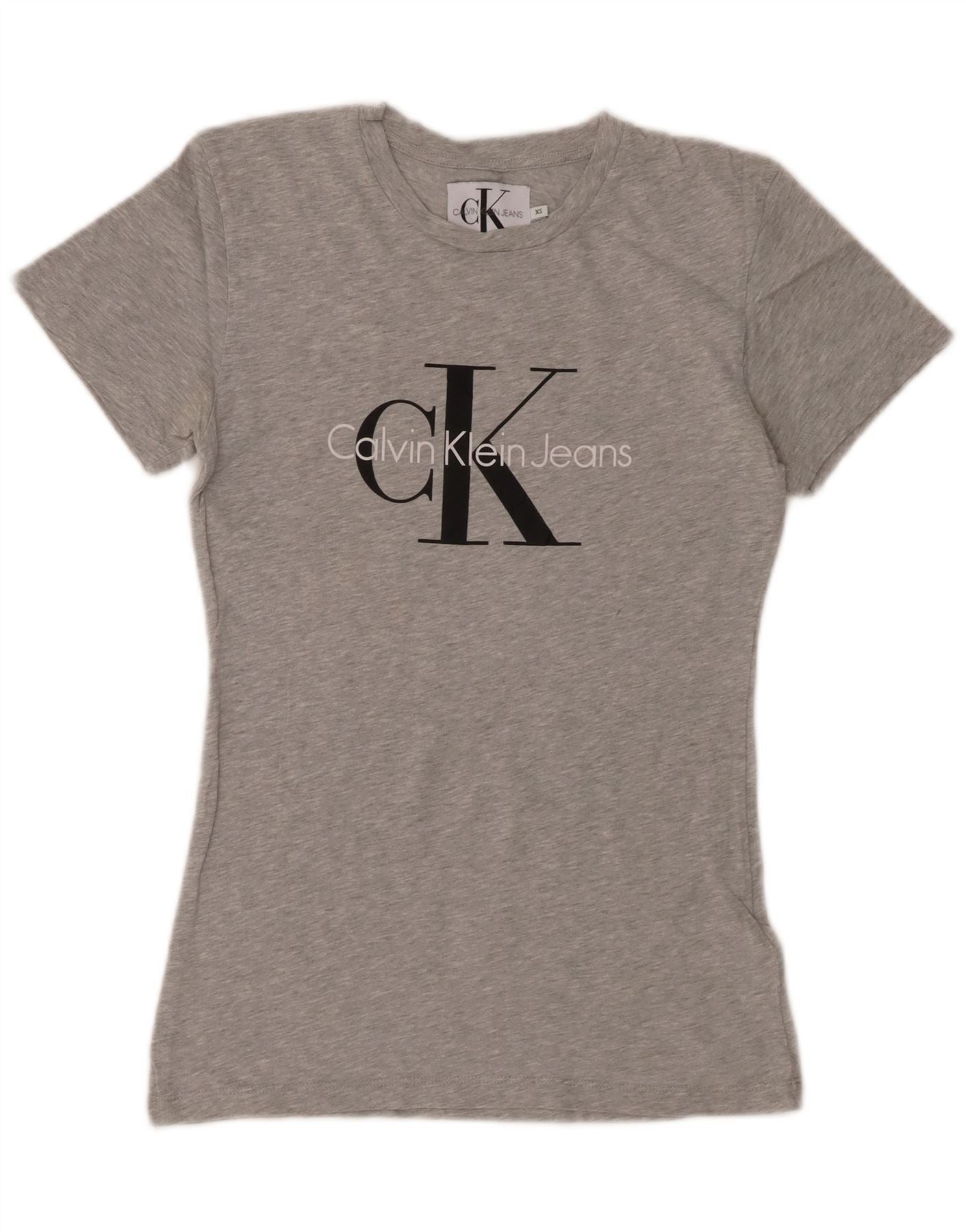 CALVIN KLEIN JEANS Женская футболка с рисунком Top UK 6 XS Серый хлопок с крапинками