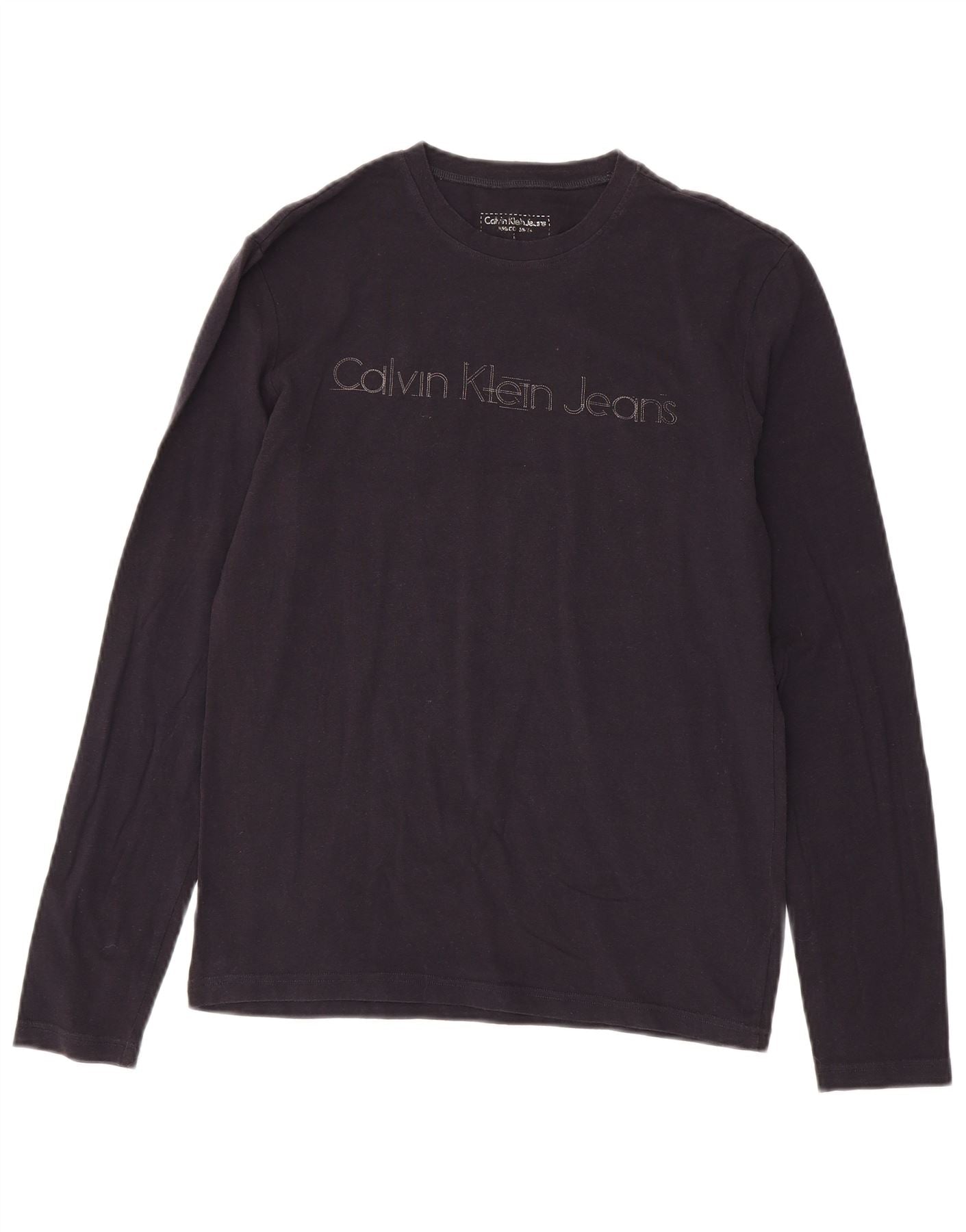CALVIN KLEIN JEANS Женский топ с рисунком с длинным рукавом UK 14, темно-синий, большой размер