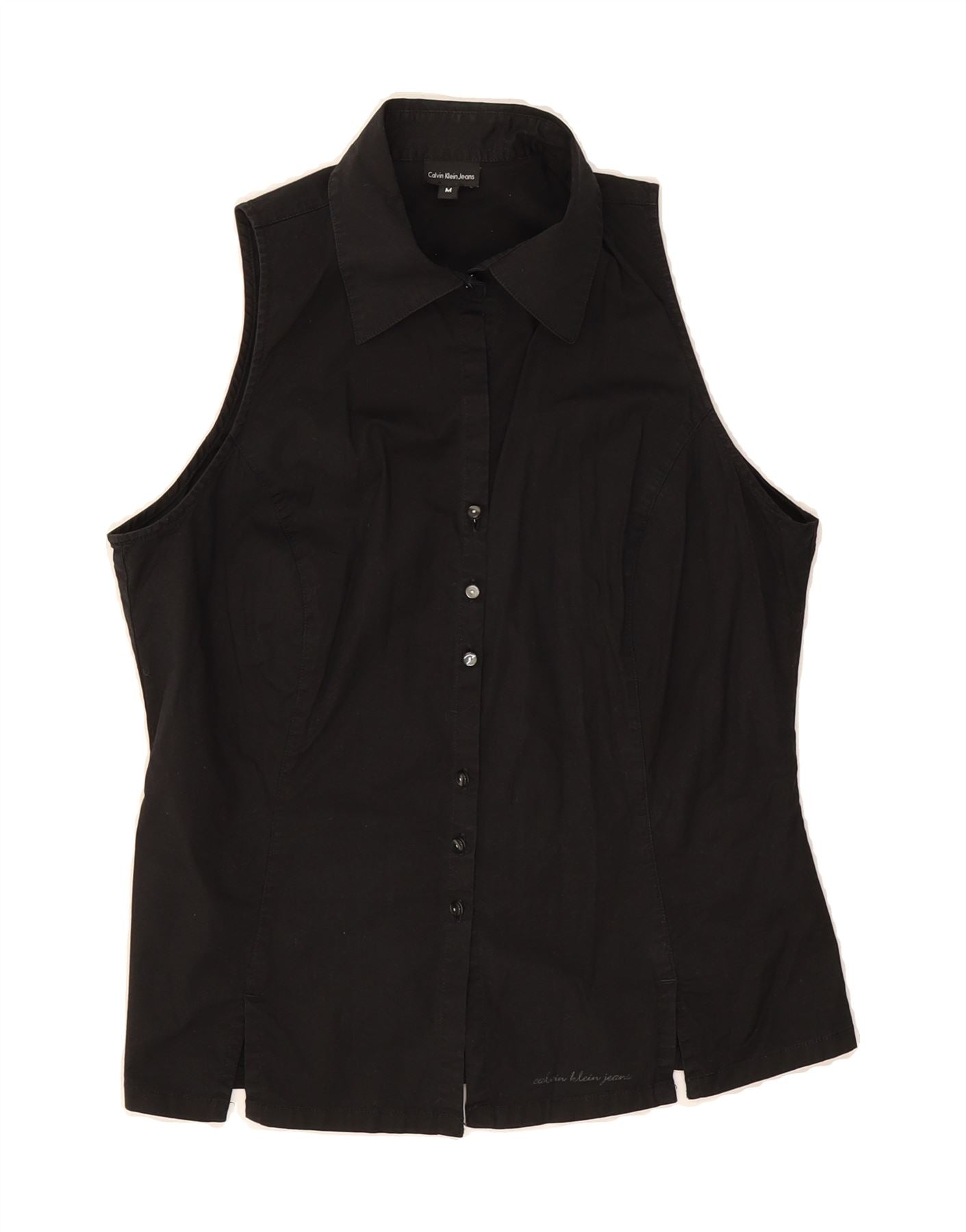 CALVIN KLEIN JEANS Womens Sleeveless Shirt UK 12 Medium Black Cotton