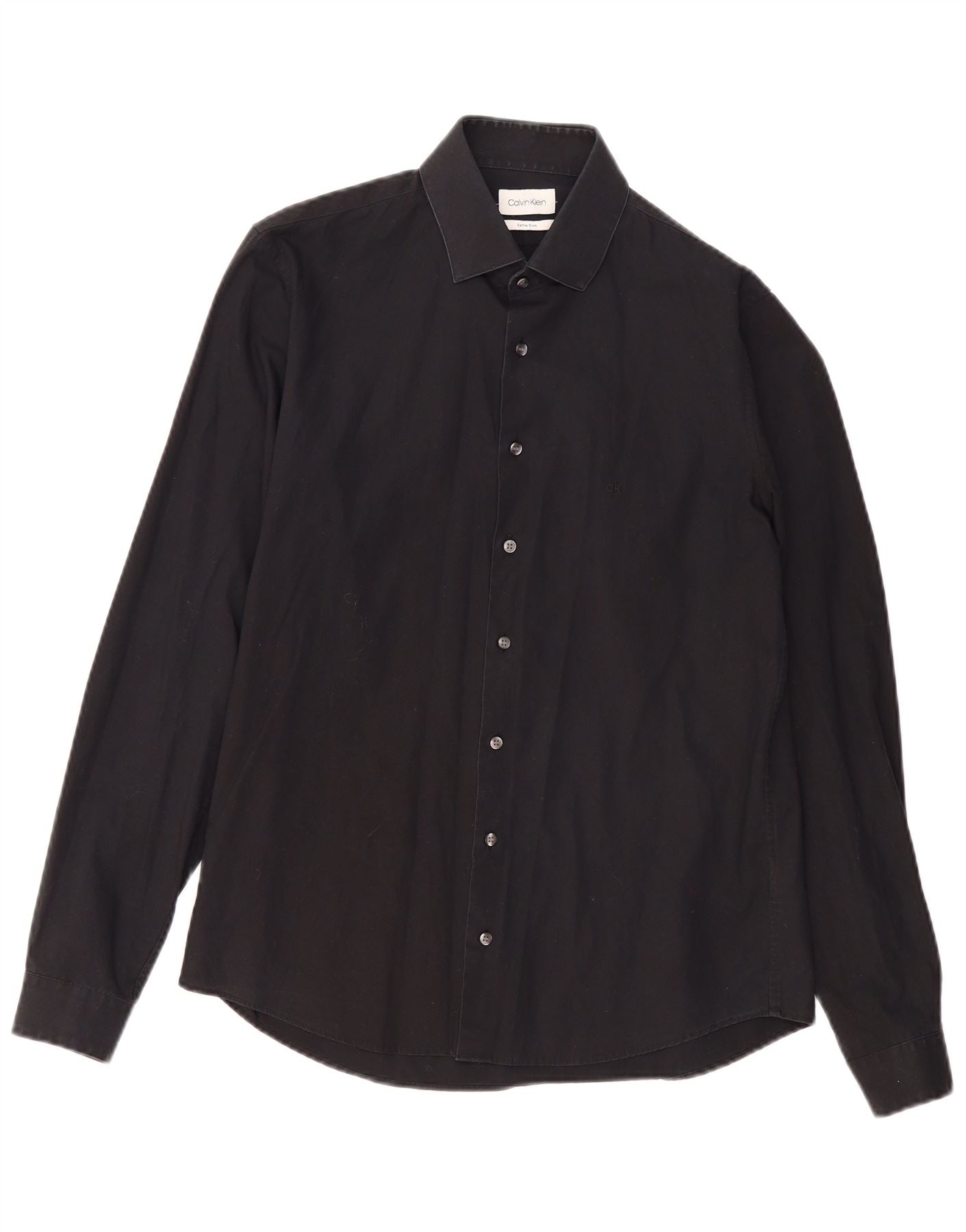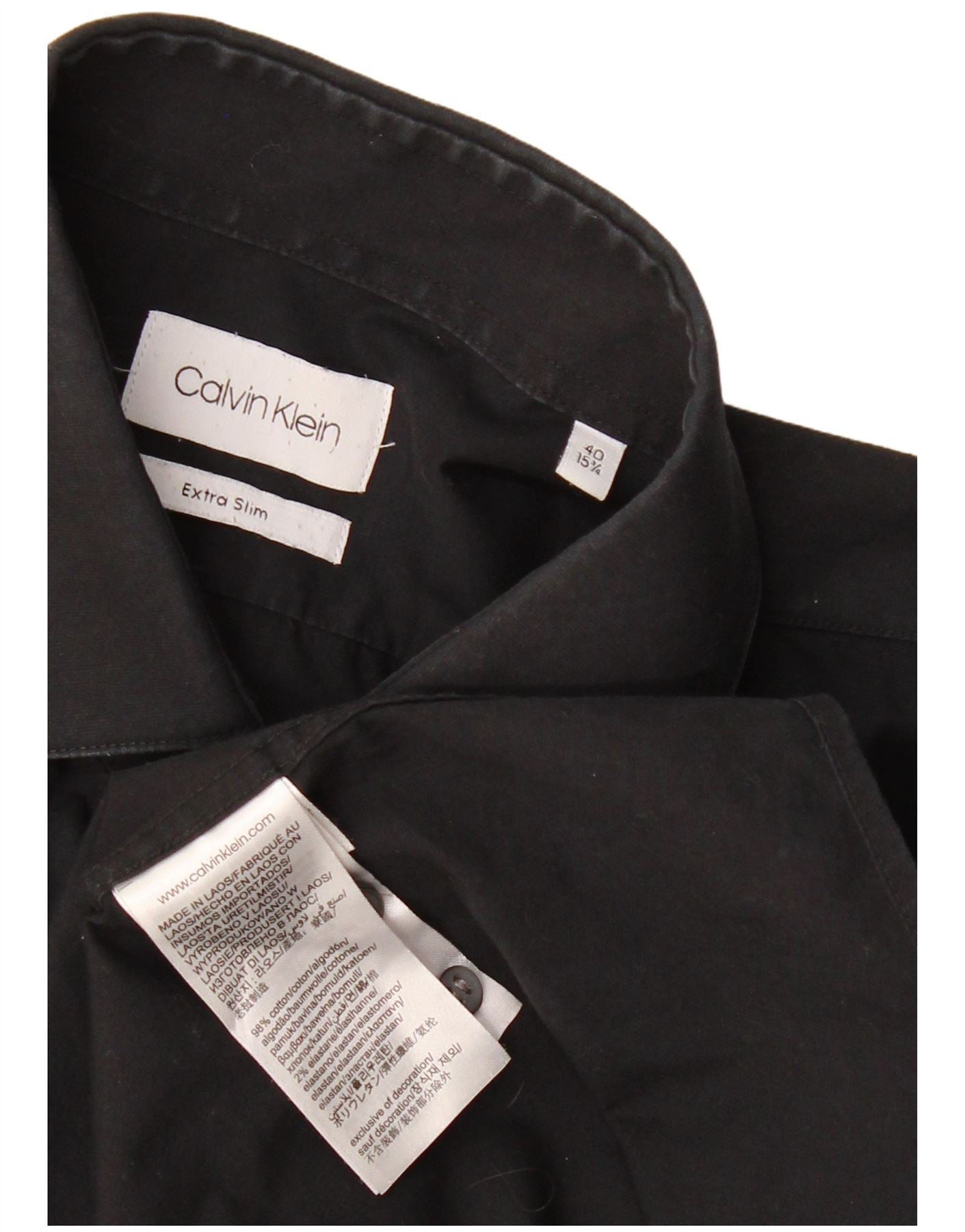 CALVIN KLEIN Мужская рубашка очень узкого кроя, размер 40 15 3/4, средний черный хлопок