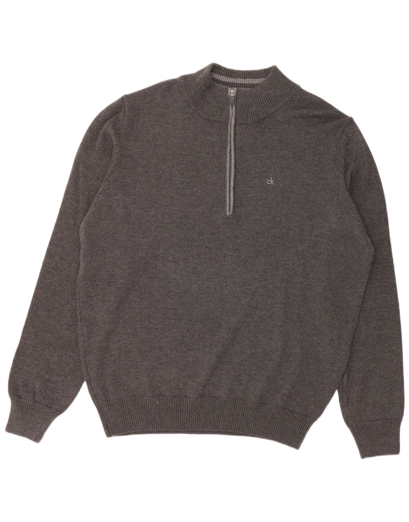 CALVIN KLEIN Mens Golf Zip Neck Jumper Sweater 2XL Grey Cotton