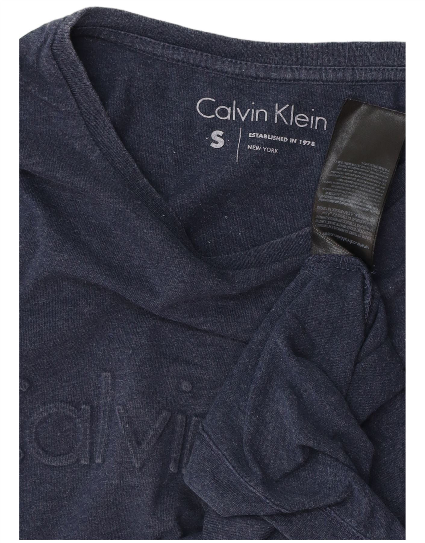 CALVIN KLEIN Мужской топ с рисунком, длинный рукав, маленький, темно-синий, хлопок
