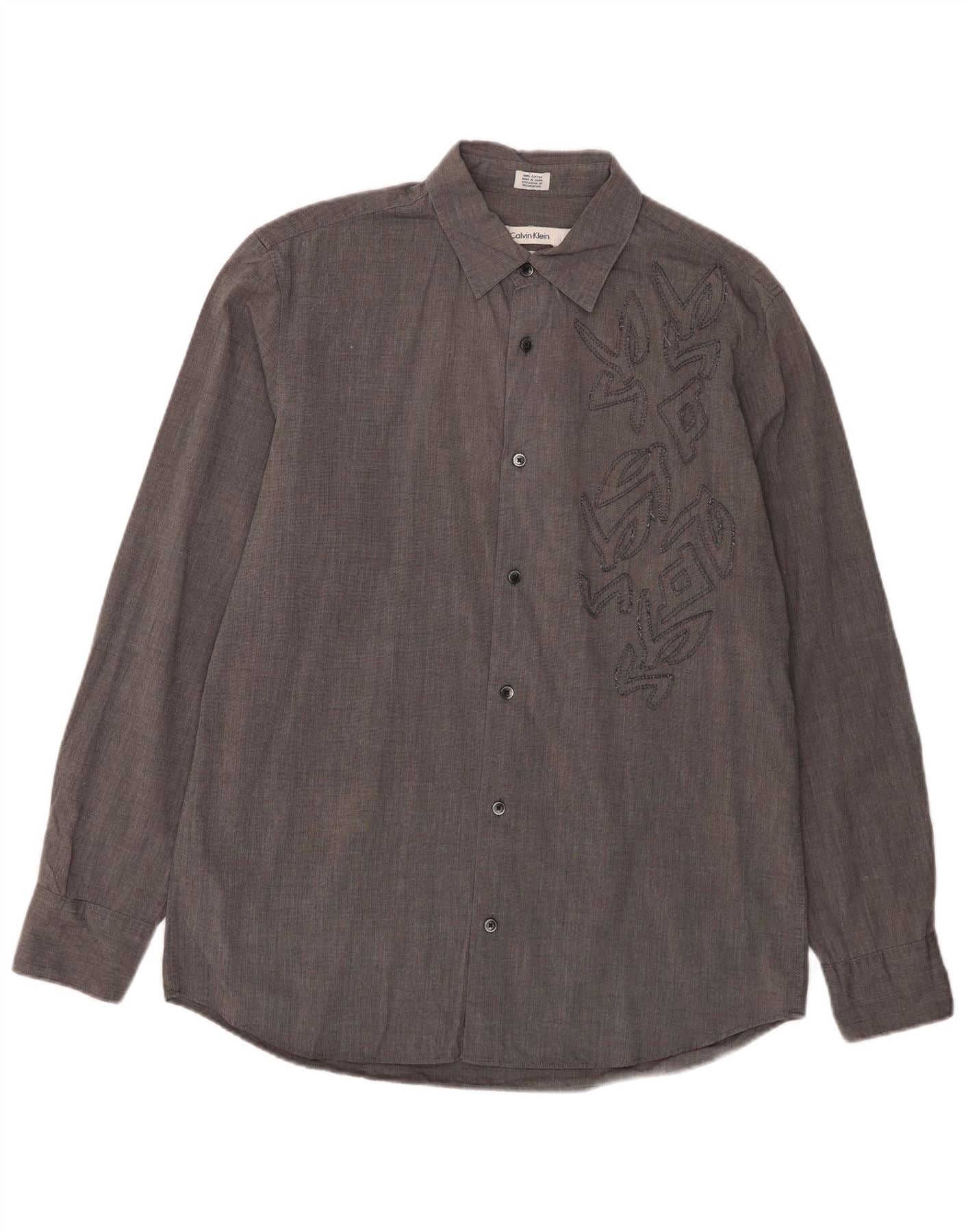 CALVIN KLEIN Мужская рубашка современного кроя из хлопка среднего серого цвета
