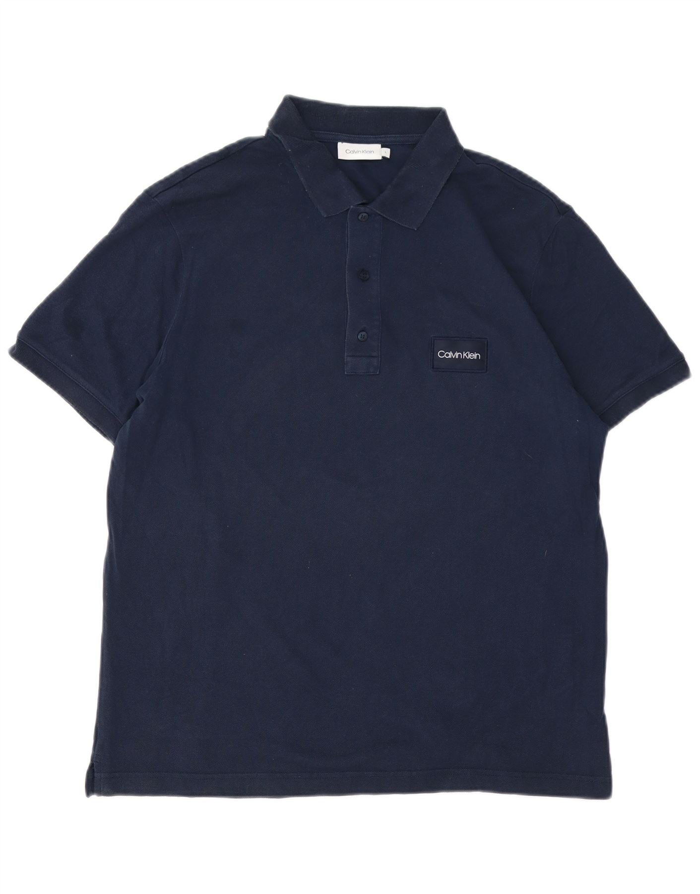 Мужская рубашка-поло CALVIN KLEIN, большая, темно-синяя, хлопок