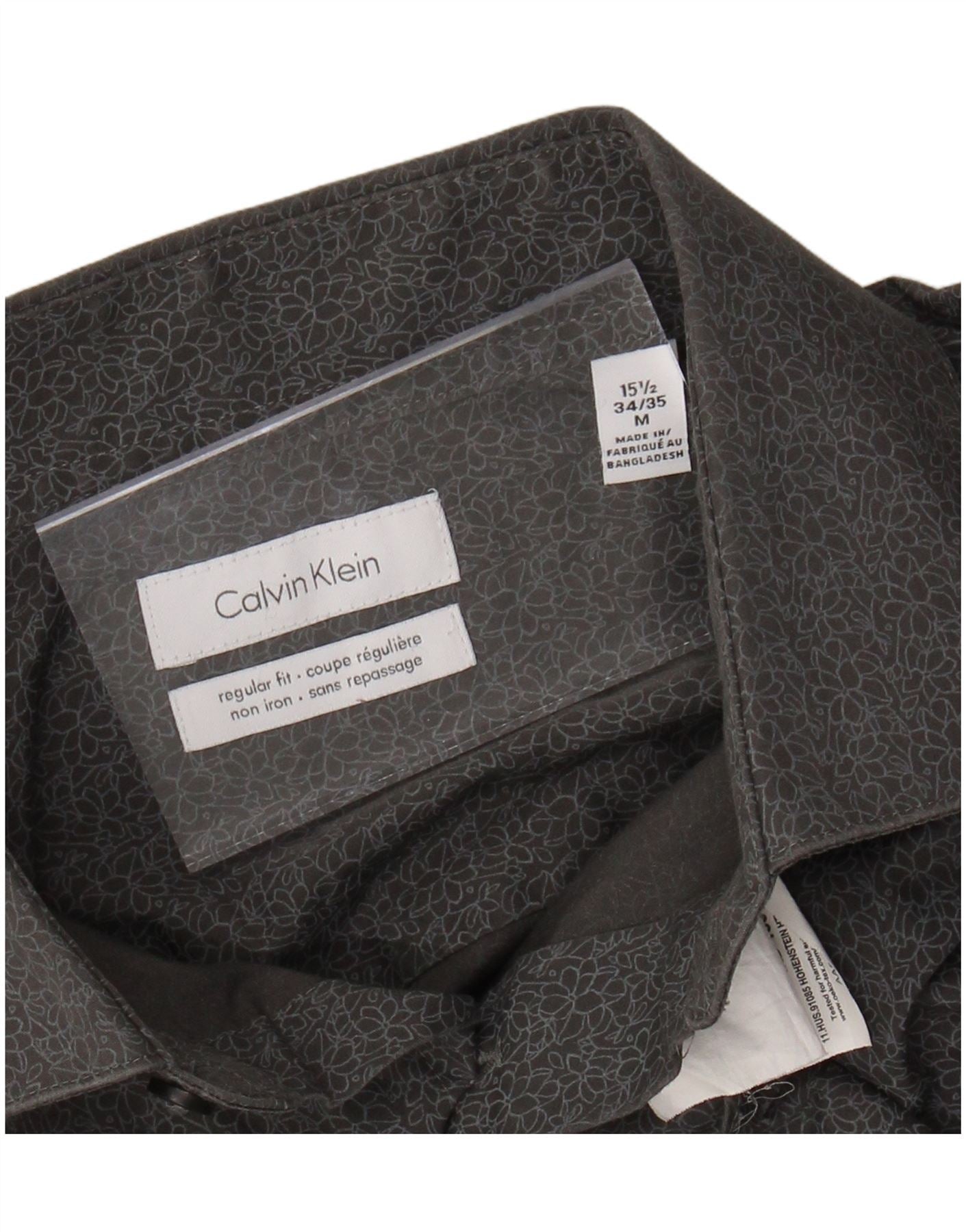 Мужская рубашка стандартного кроя CALVIN KLEIN, размер 15 1/2, средний серый с цветочным принтом