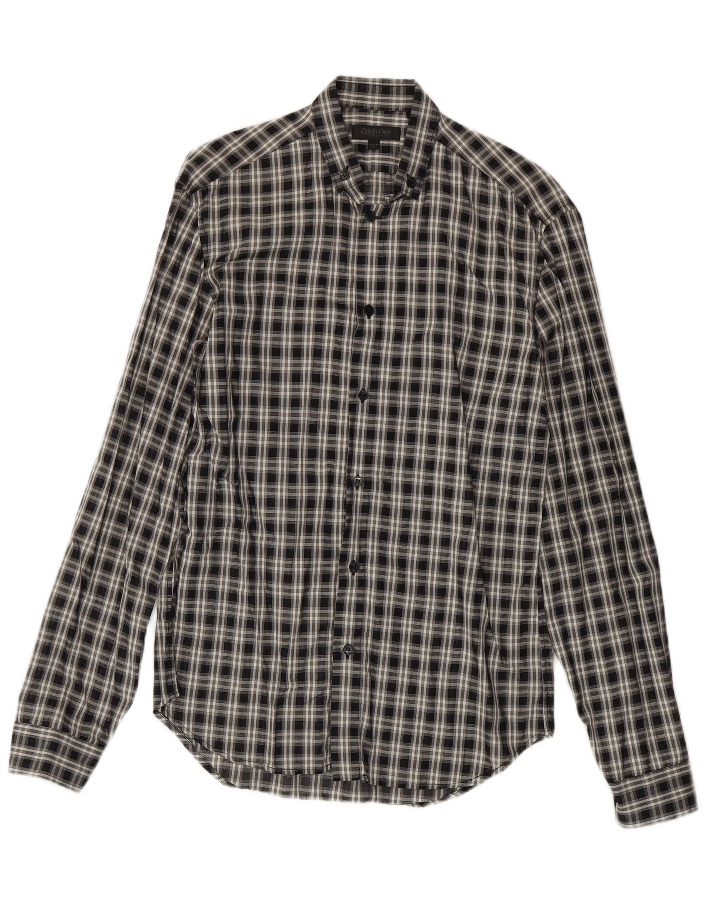 Мужская рубашка Calvin Klein в клетку среднего размера, черный хлопок, хлопок