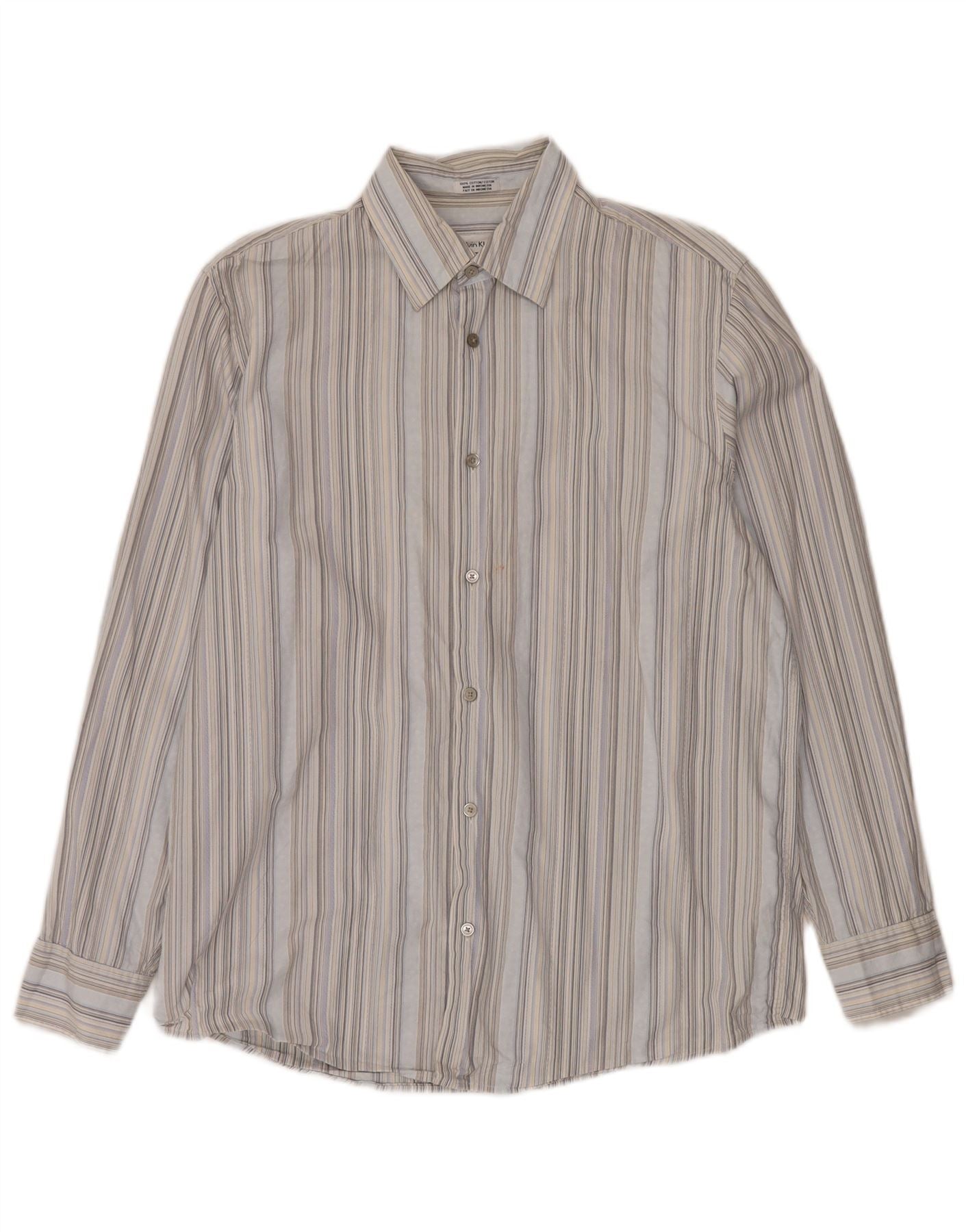 CALVIN KLEIN Мужская рубашка из хлопка в синюю полоску среднего размера
