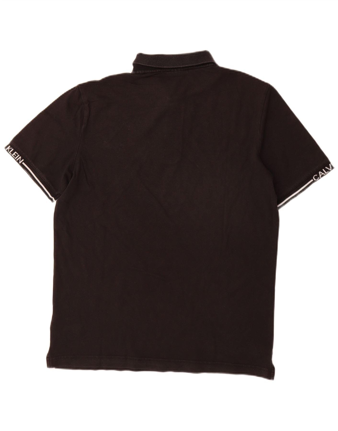 CALVIN KLEIN Mens Slim Fit Graphic Polo Shirt Large Black Cotton