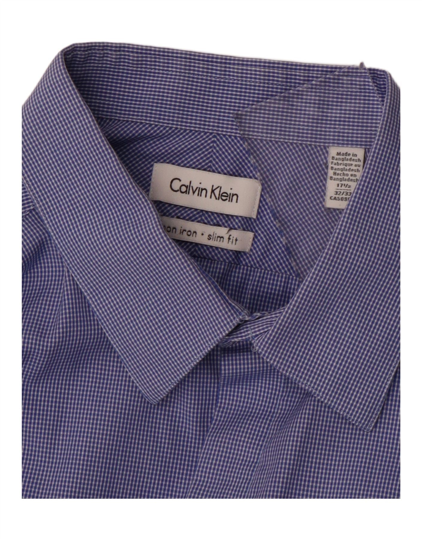 Мужская рубашка приталенного кроя CALVIN KLEIN, размер 17 1/2 XL, синяя клетка, хлопок