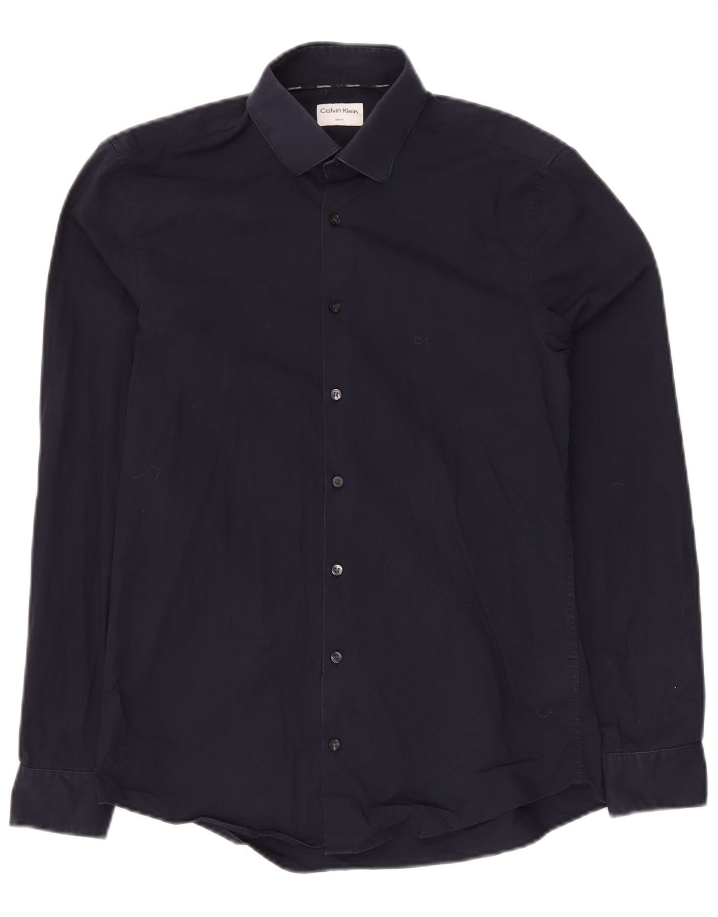 Мужская рубашка приталенного кроя CALVIN KLEIN, размер 39, средний темно-синий, хлопок