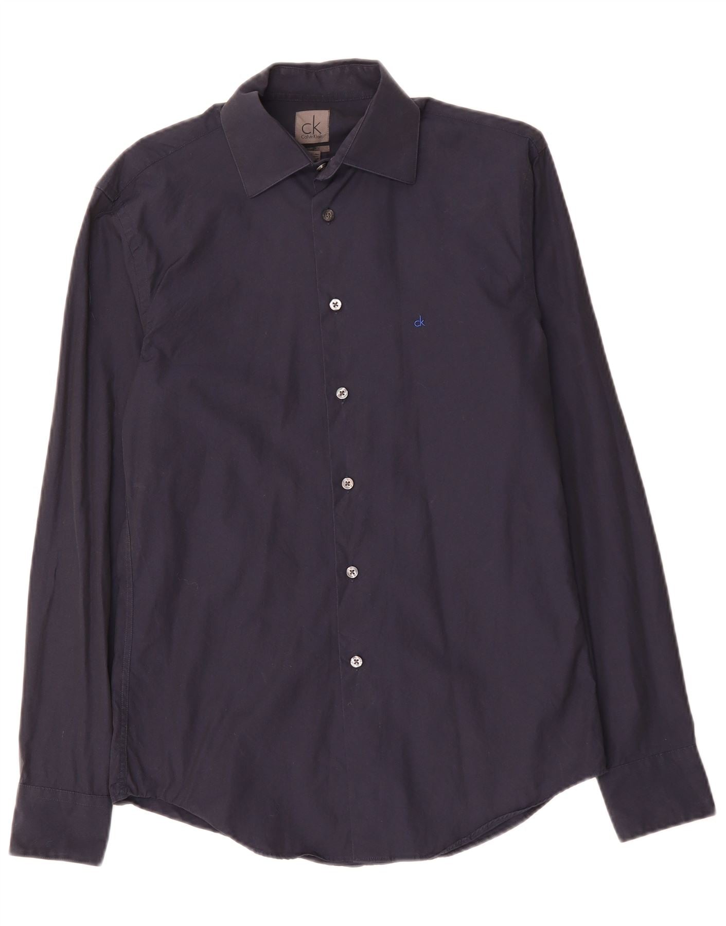 CALVIN KLEIN Мужская рубашка приталенного кроя, маленький размер, темно-синий, хлопок