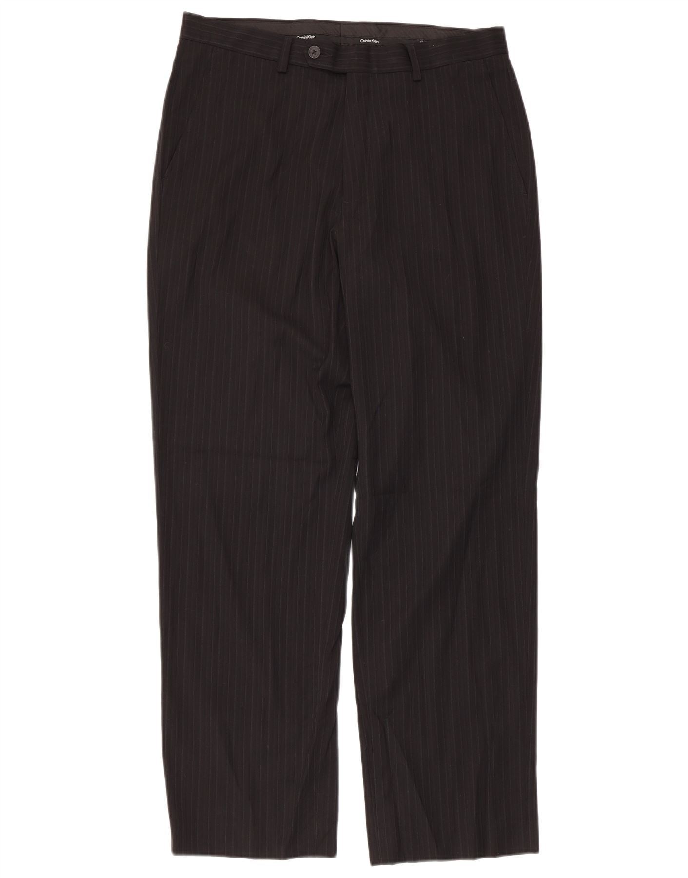 Мужские прямые костюмные брюки CALVIN KLEIN W31 L30, черные полиэстер в тонкую полоску