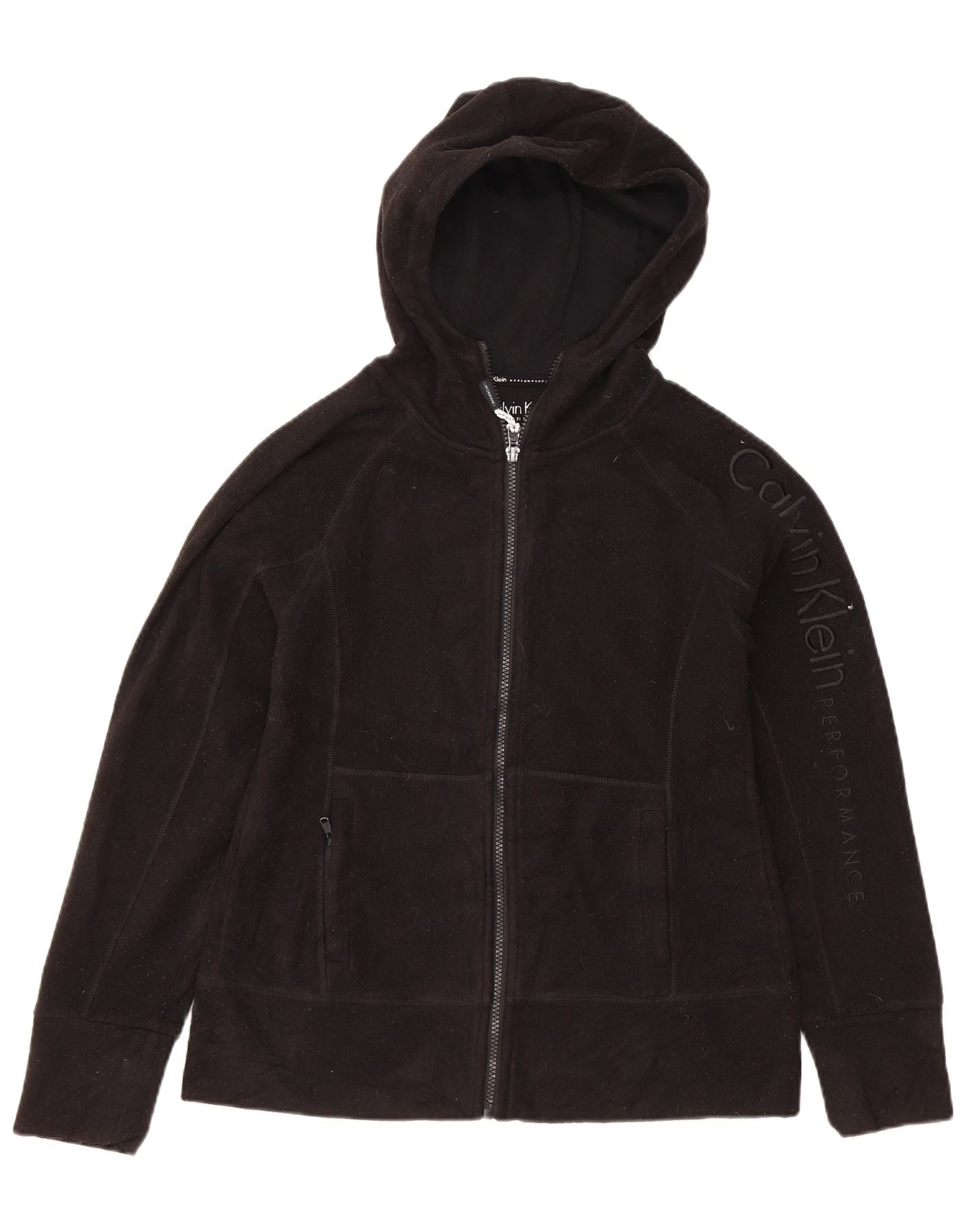 Женская флисовая куртка с капюшоном и графическим рисунком Calvin Klein UK 10, маленькая черная
