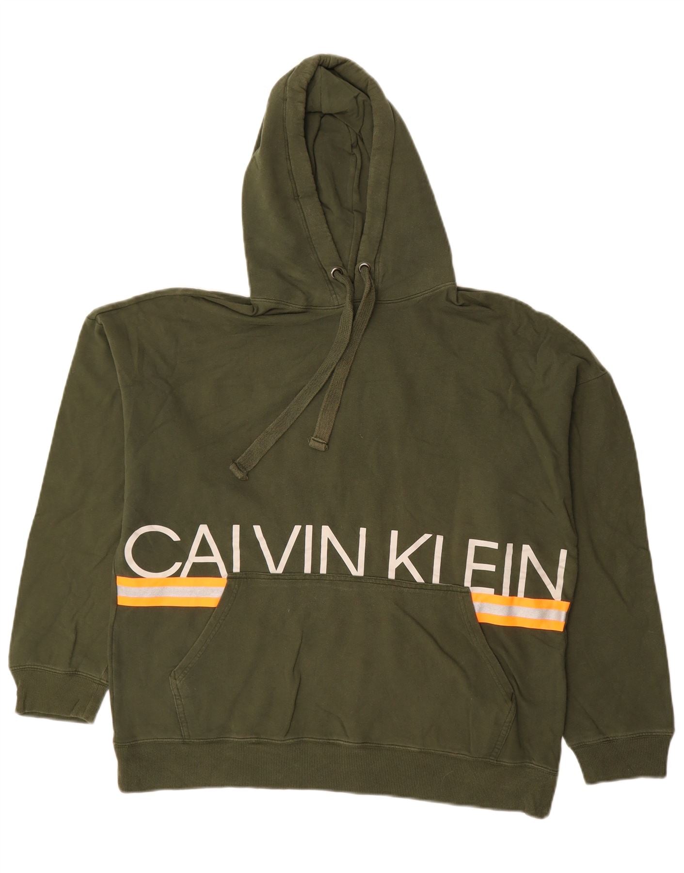 CALVIN KLEIN Женский джемпер с капюшоном оверсайз с графическим рисунком UK 16, большой цвет хаки
