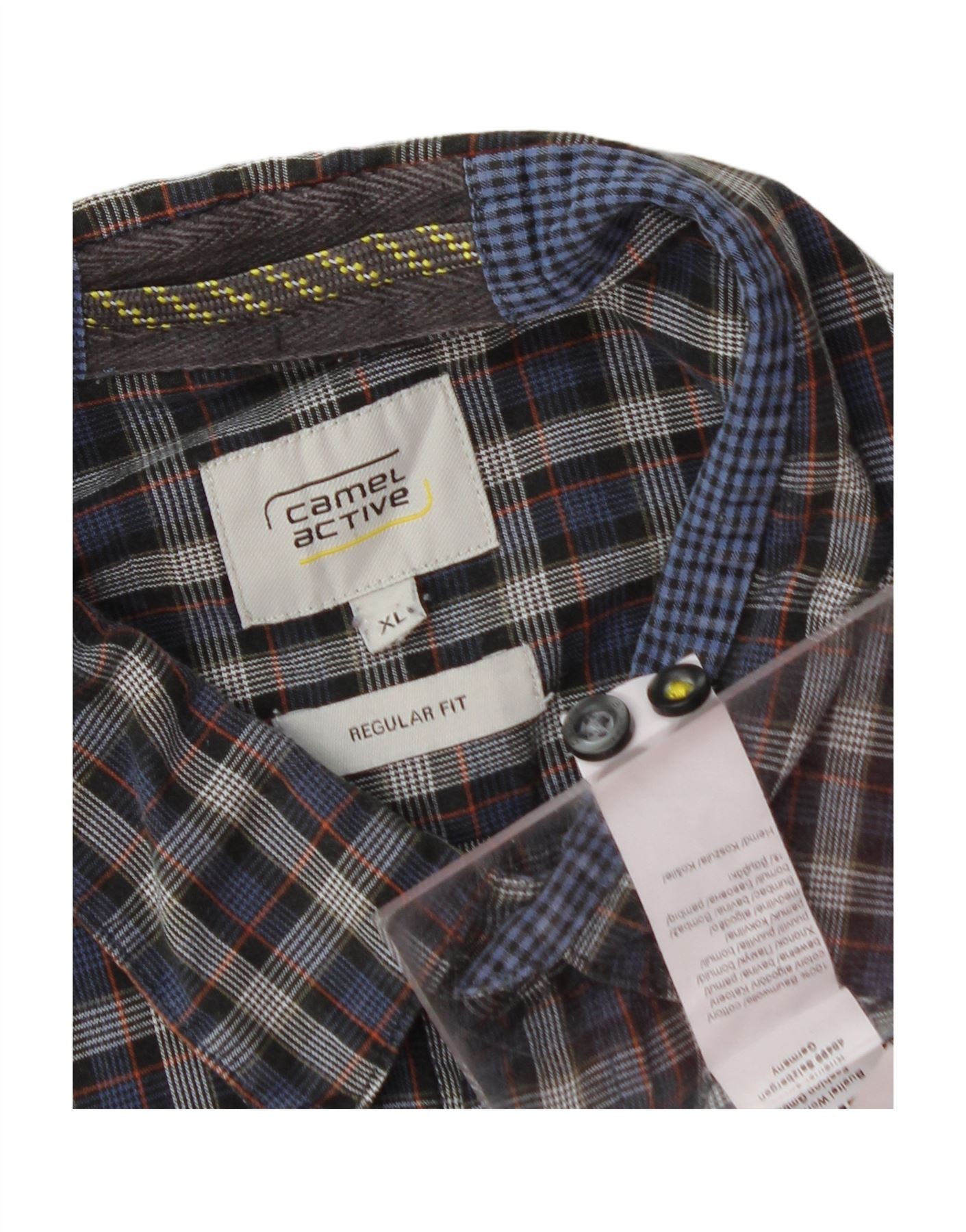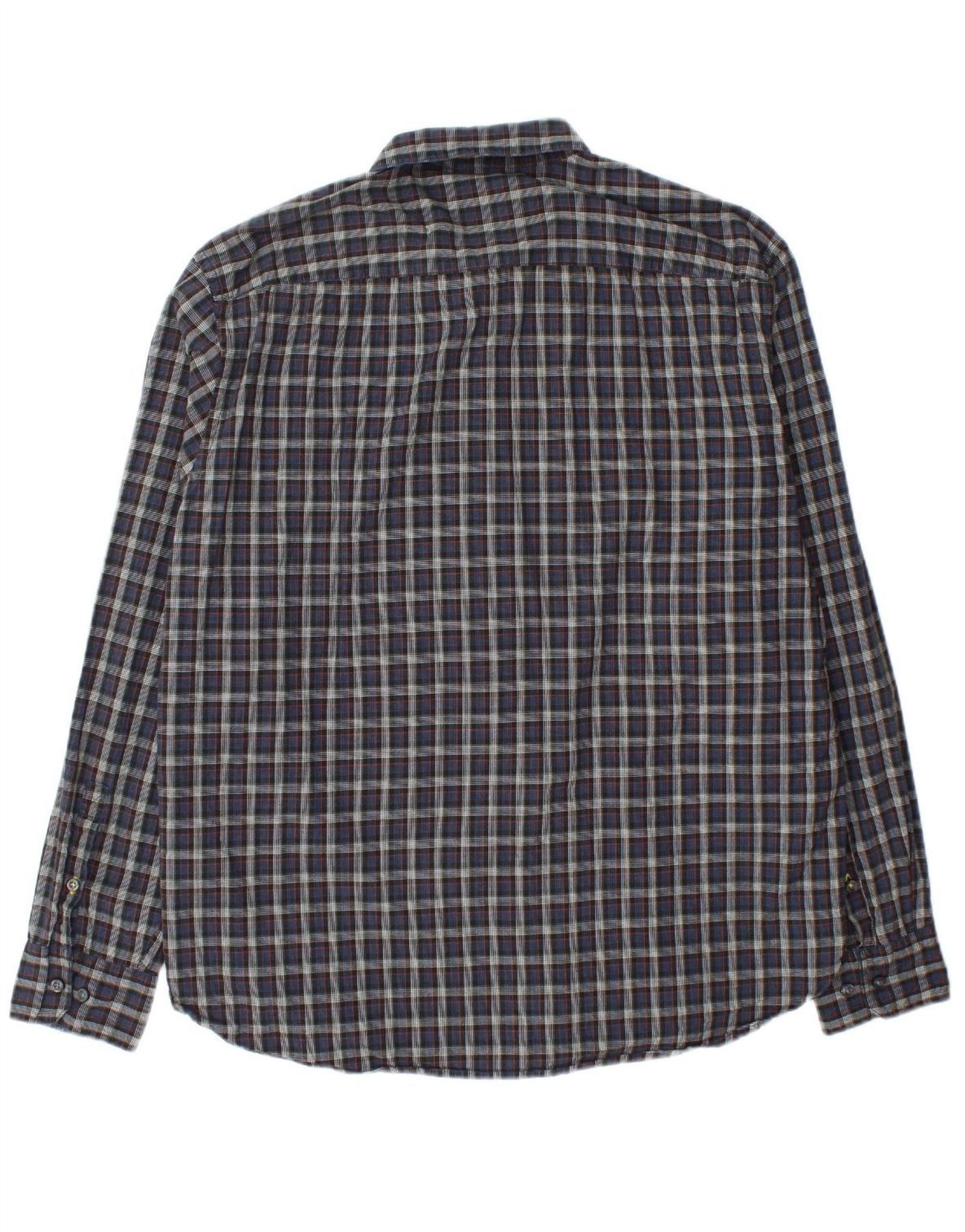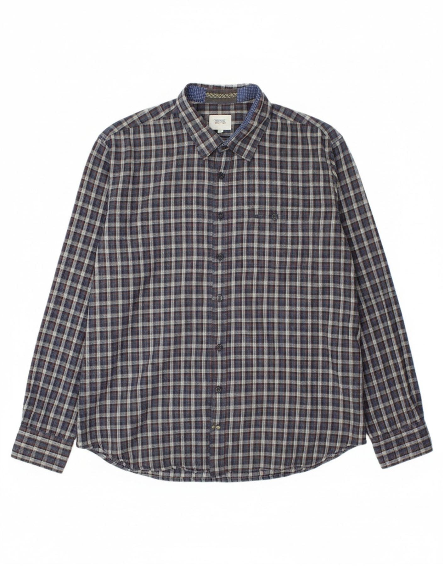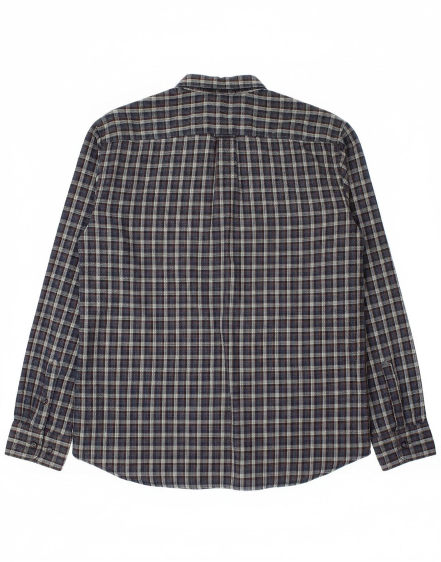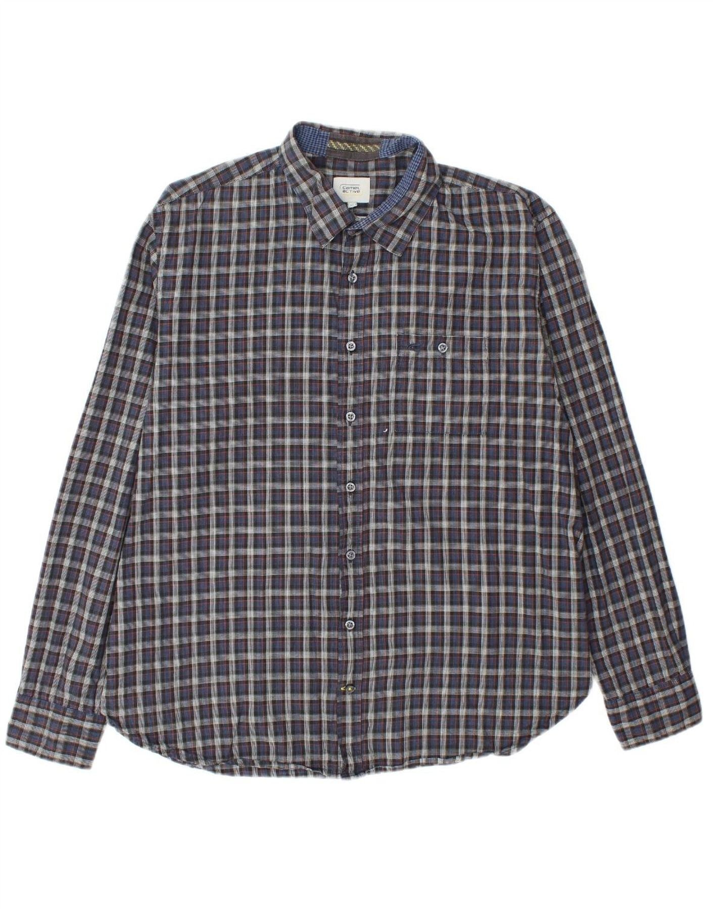 CAMEL Mens Regular Fit Flannel Shirt XL Navy Blue Check Cotton