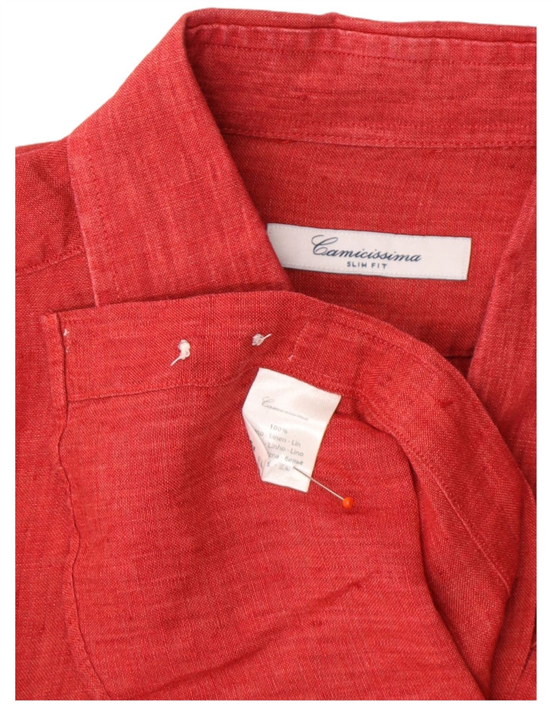 CAMICISSIMA Мужская рубашка приталенного кроя XL, красная льняная ткань