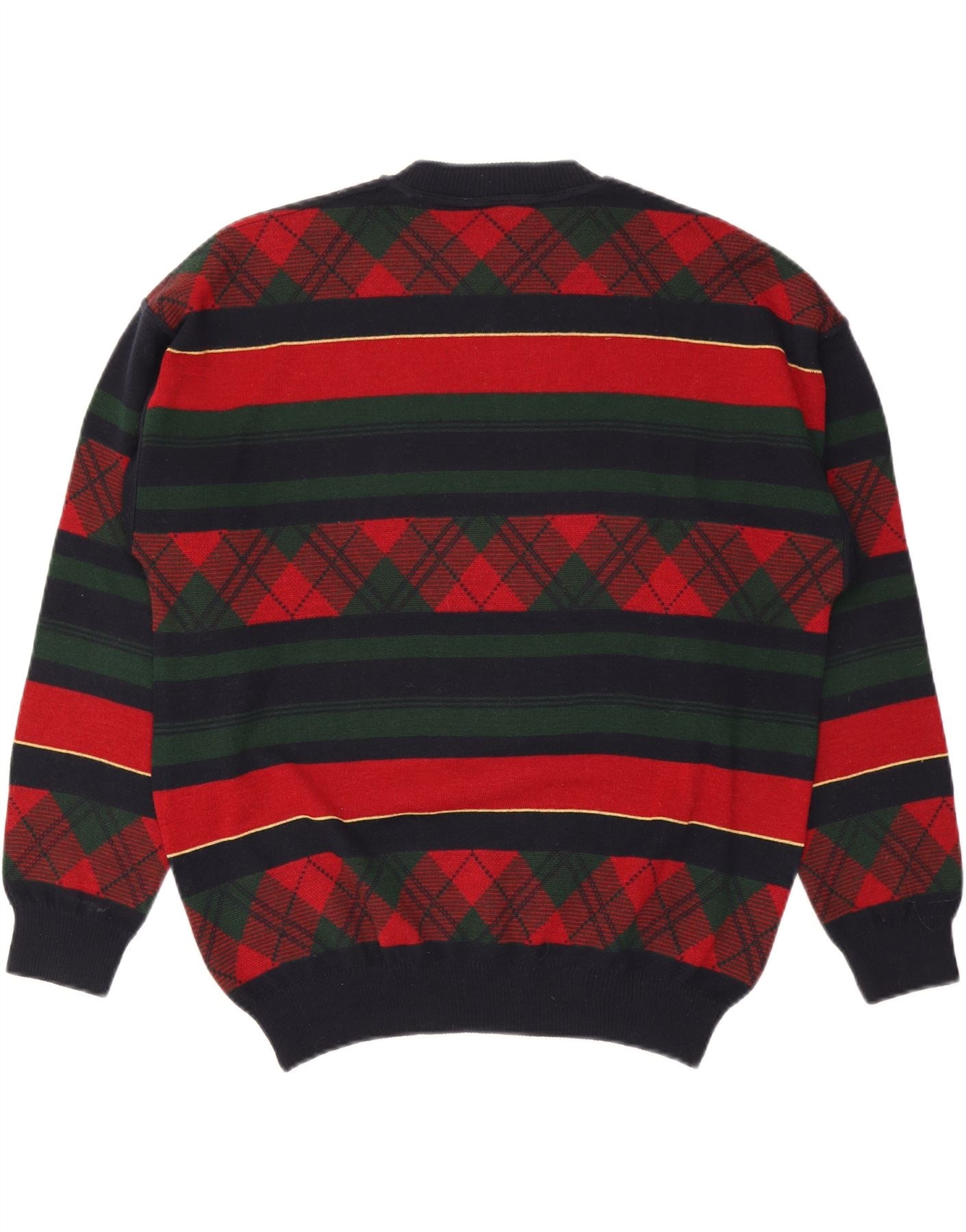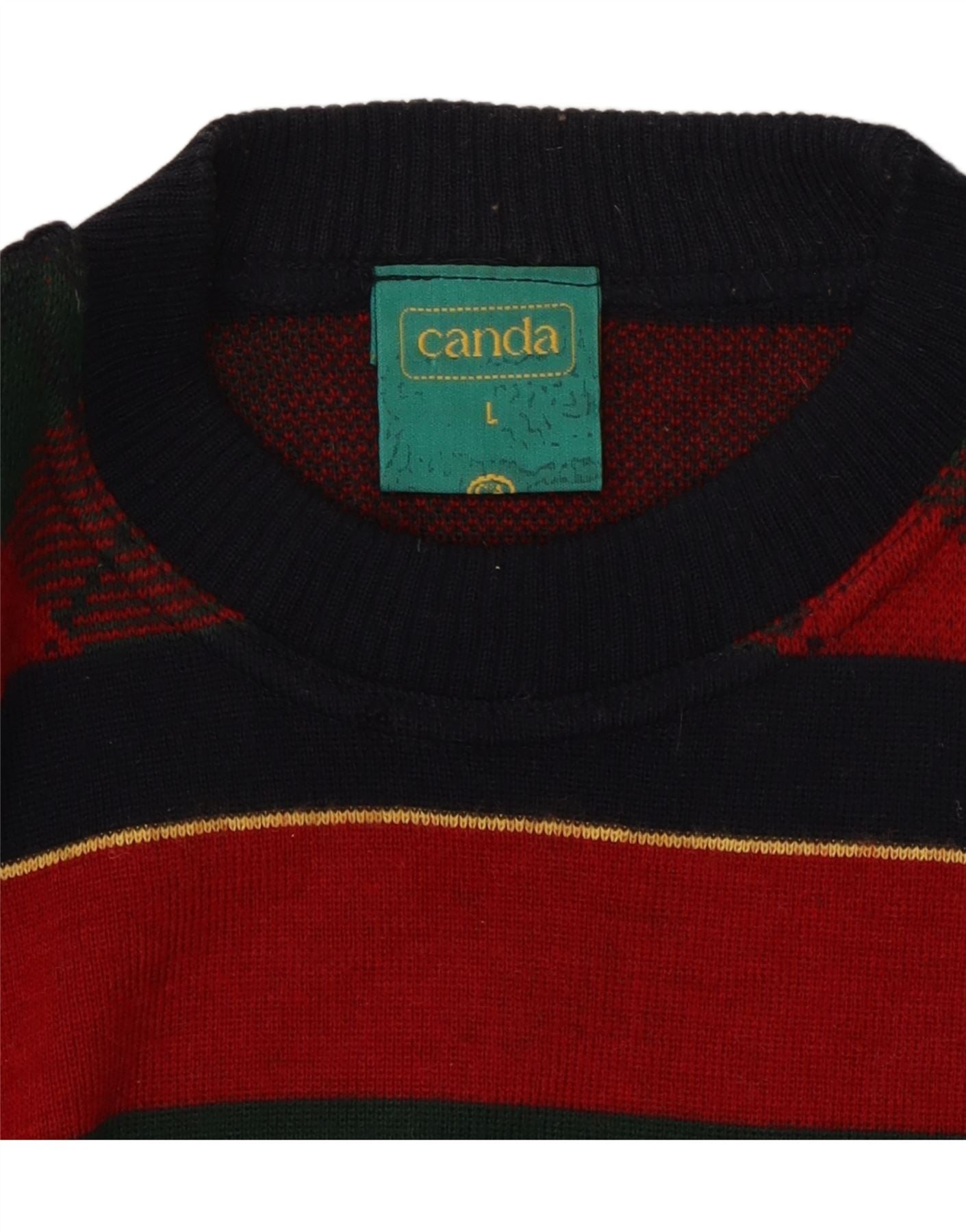 CANDA Mens Crew Neck Jumper Sweater Large Multicoloured Striped Acrylic
