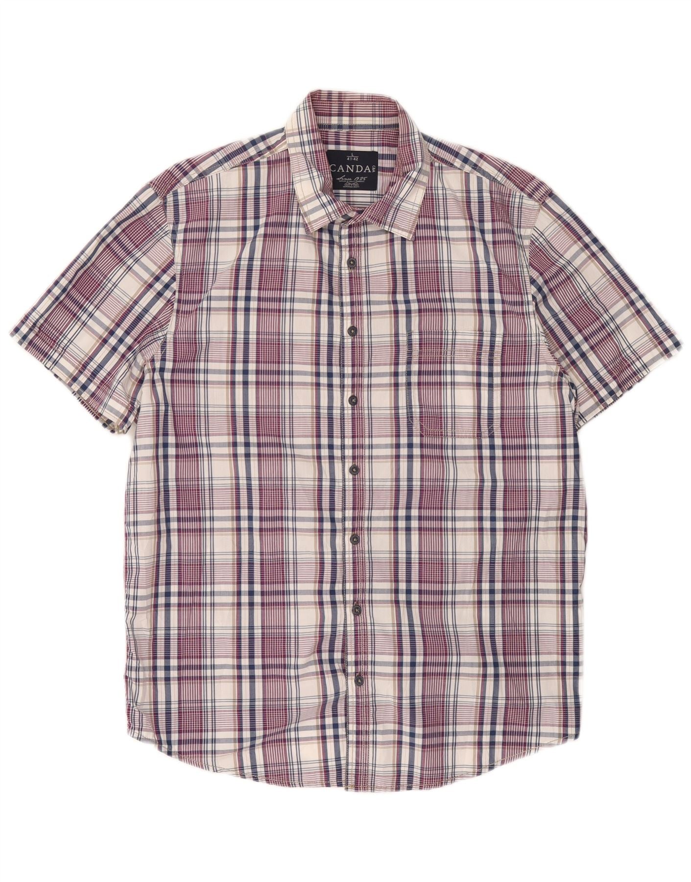 CANDA Мужская рубашка с коротким рукавом, размер 41/42, большая разноцветная клетка, хлопок