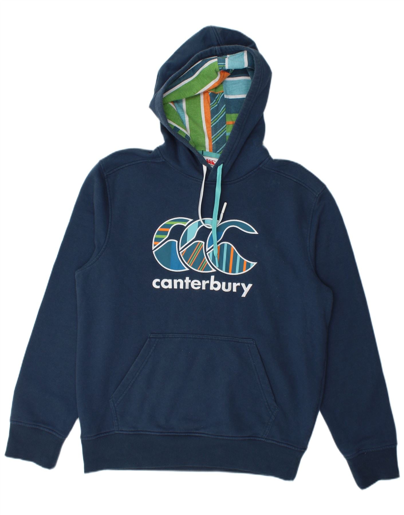 CANTERBURY Mens Graphic Hoodie Jumper Medium Navy Blue Cotton