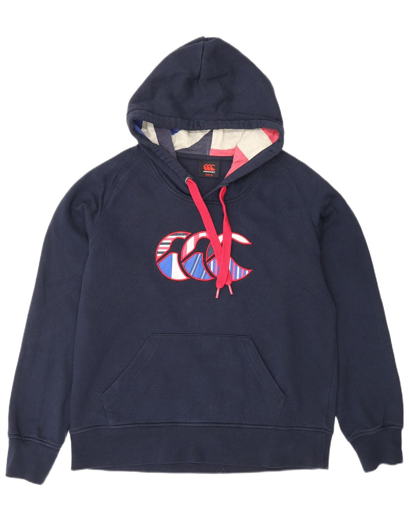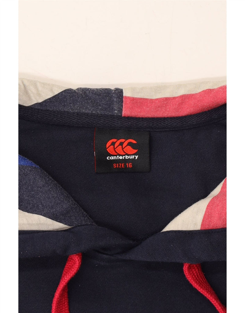 CANTERBURY Womens Graphic Hoodie Jumper UK 16 Large Navy Blue Cotton