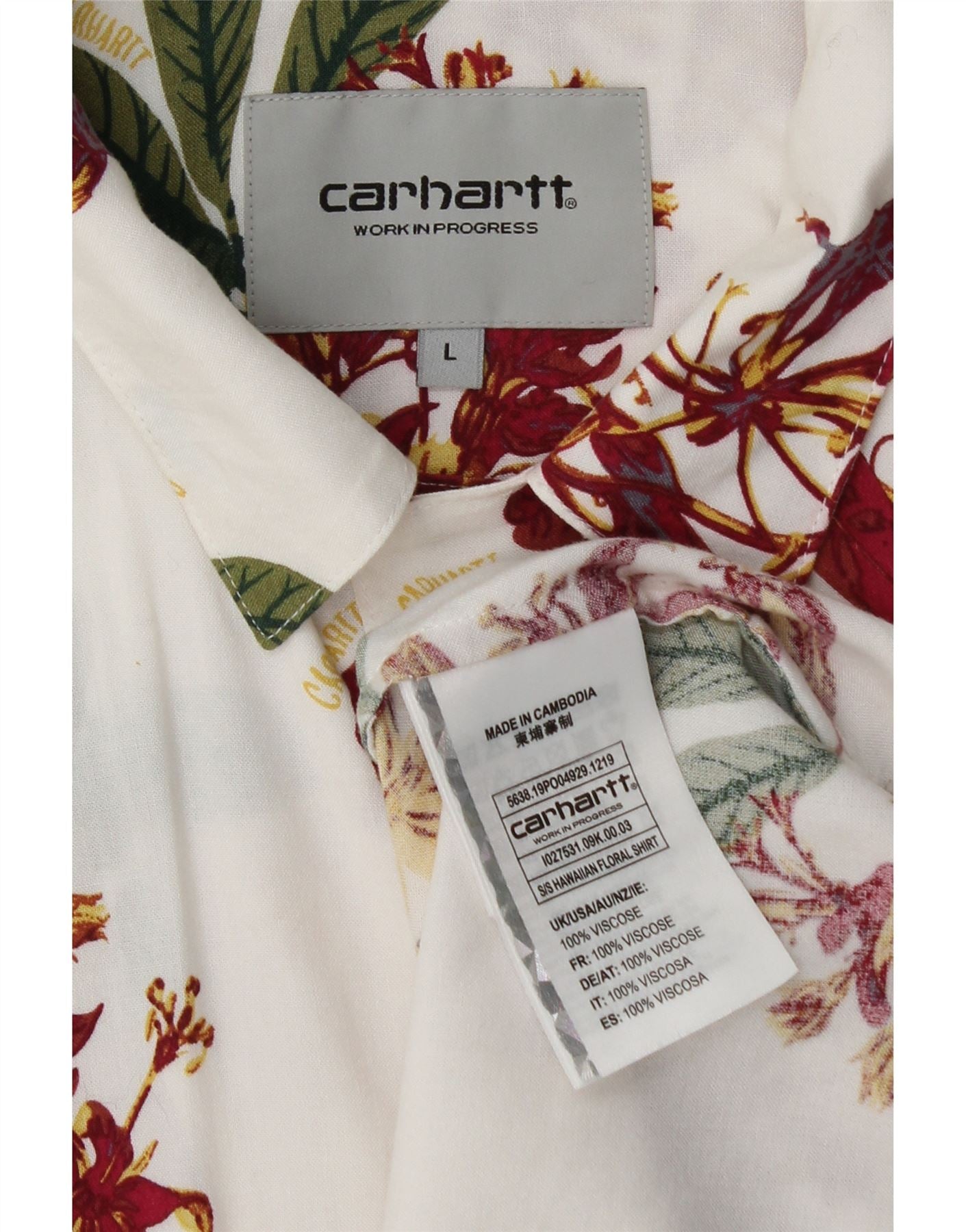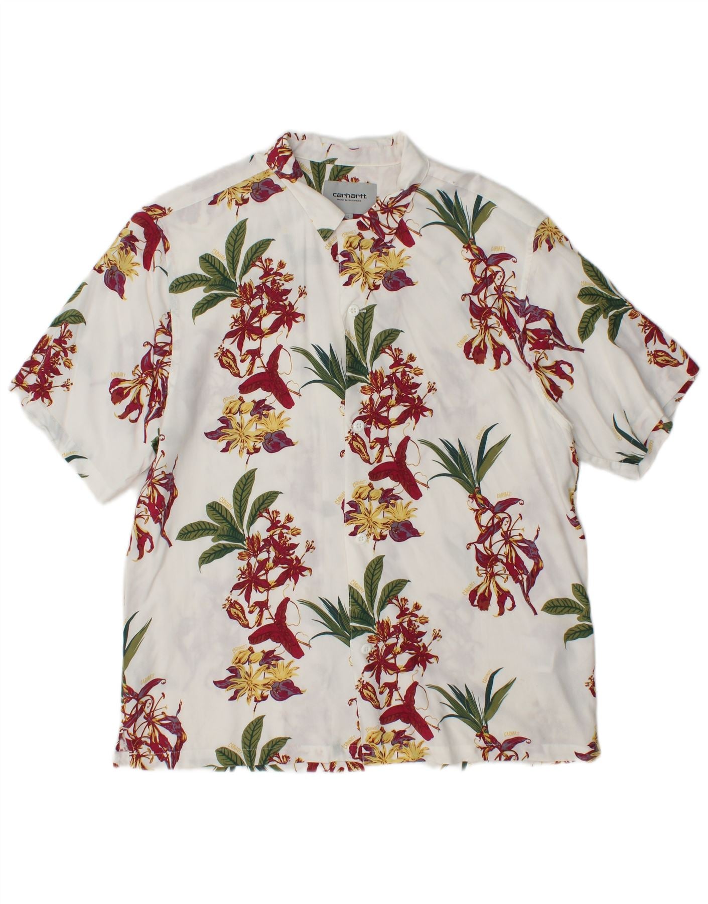 CARHARTT Мужская гавайская рубашка с коротким рукавом, большая белая вискоза с цветочным принтом