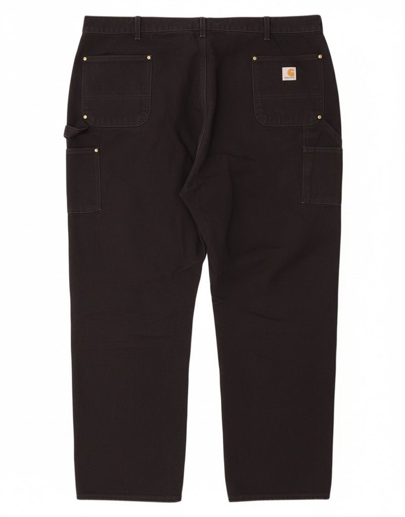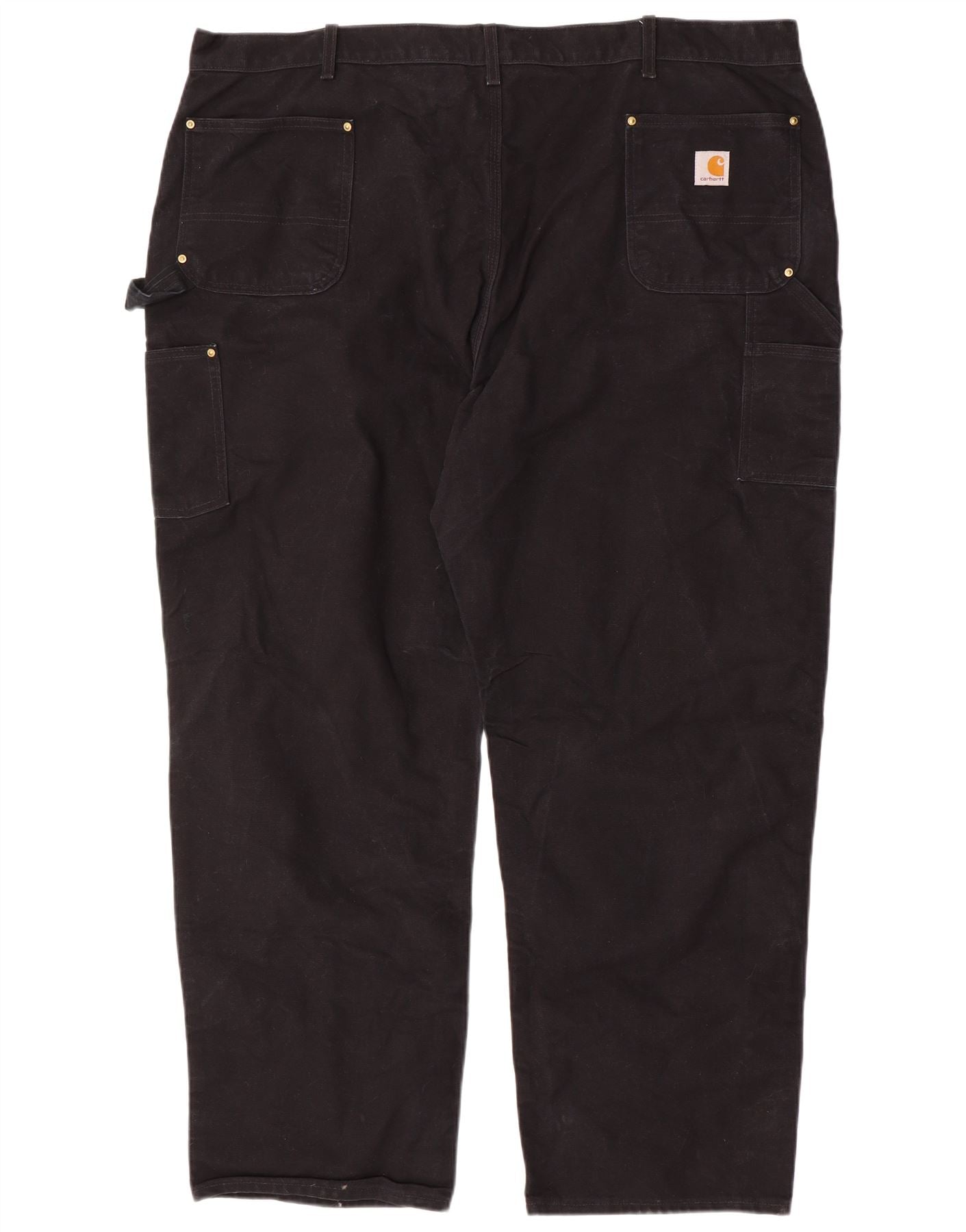 - AI Description: This Carhartt mens Cargo Trousers are crafted from heavyweight black 100 percent cotton canvas. They feature a relaxed, loose fit for ultimate comfort and movement. The design includes multiple practical pockets, ideal for everyday utility. A sturdy button closure secures the waist. Studded accents add a robust, classic detail. These trousers are built for durability and provide lasting wear, embodying a timeless, rugged style.