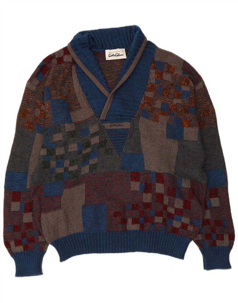 CARLO COLUCCI Mens Shawl Neck Jumper Sweater XL Multicoloured Geometric