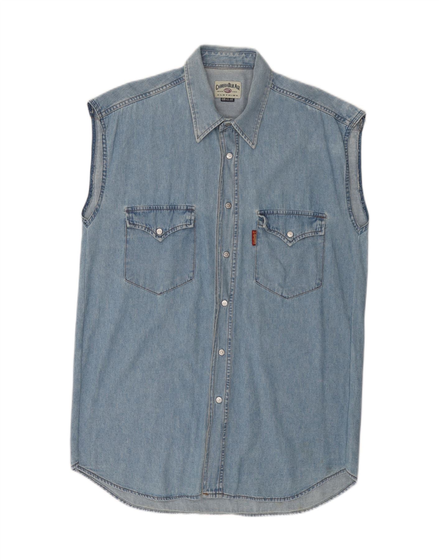 Home > Винтажная одежда Каррера > Мужской > CARRERA Мужская джинсовая рубашка без рукавов, размер 43/44 XL, синяя, хлопок