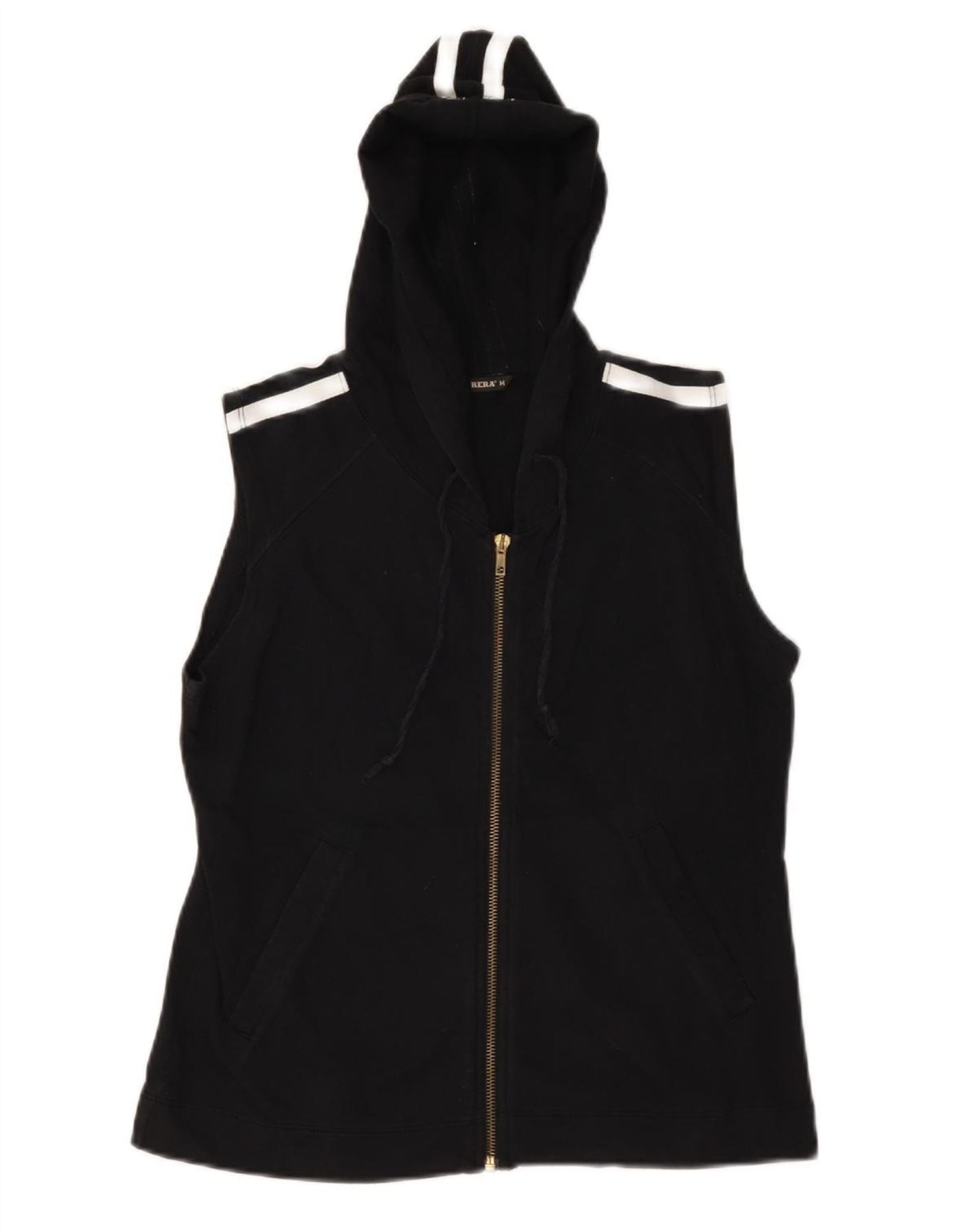 CARRERA Womens Sleeveless Zip Hoodie Sweater UK 12 Medium Black Cotton