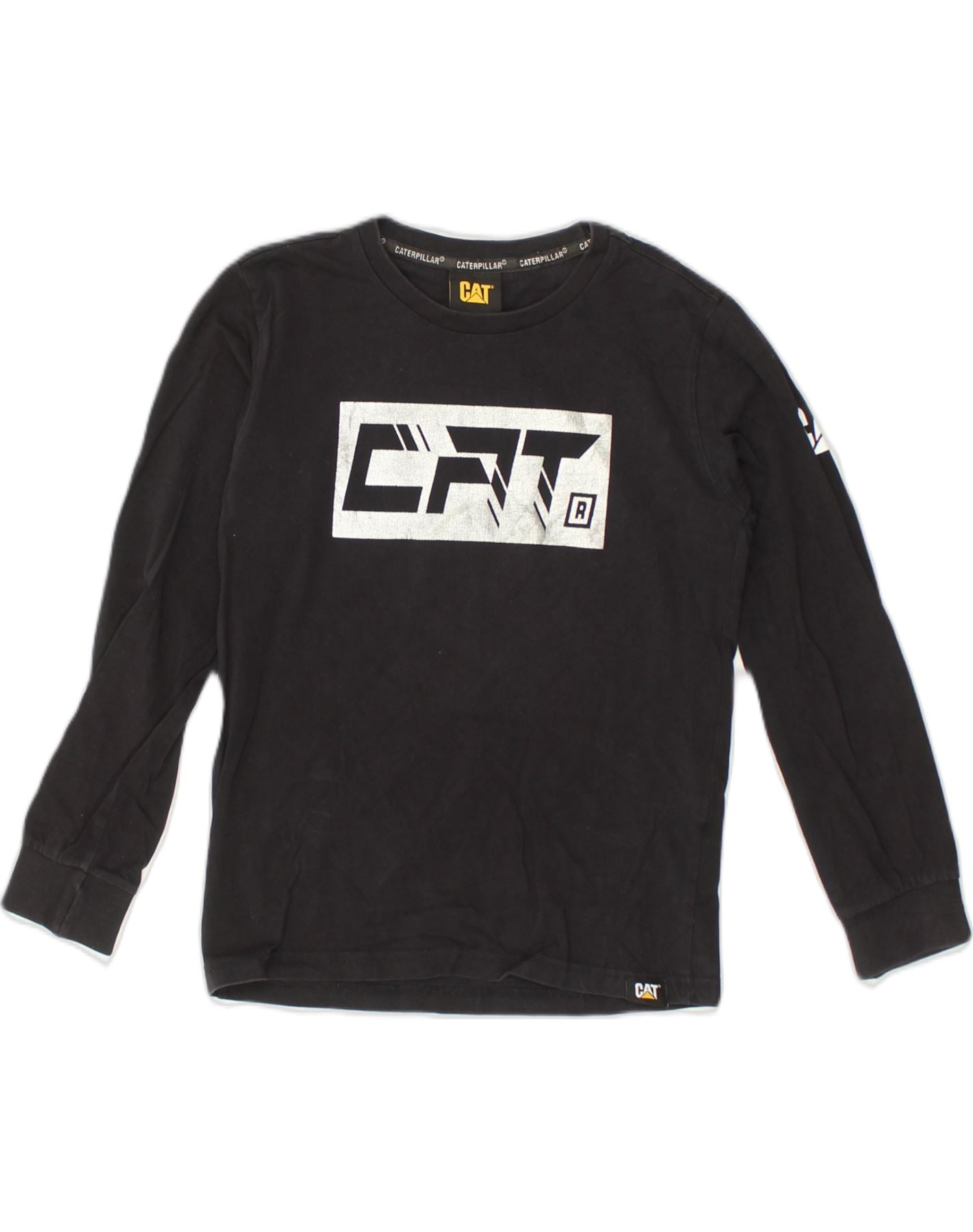 CATERPILLAR Girls Graphic Top Long Sleeve 9-10 Years Black Cotton