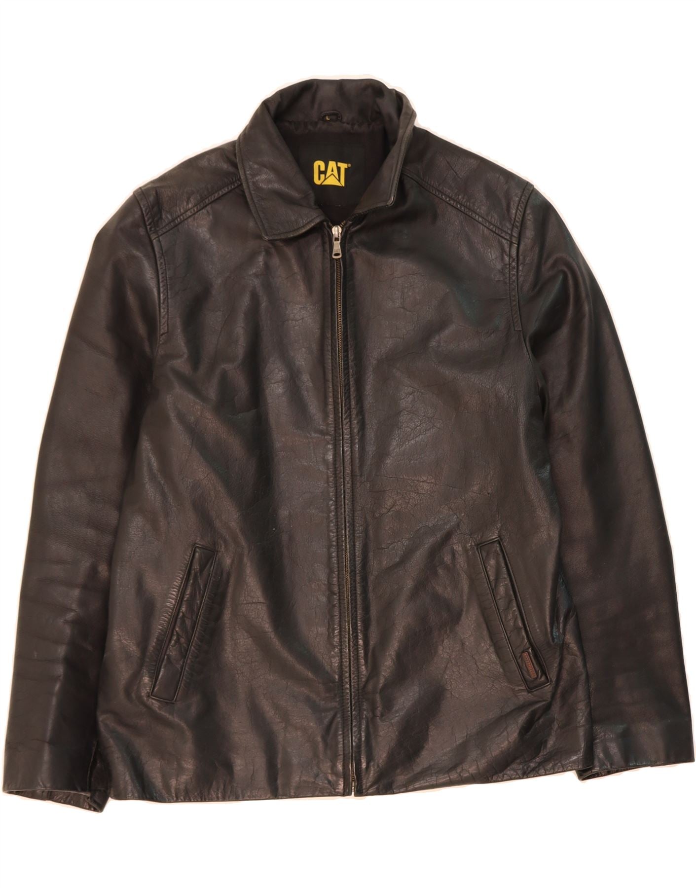 CATERPILLAR Mens Leather Jacket UK 40 Large Black Leather