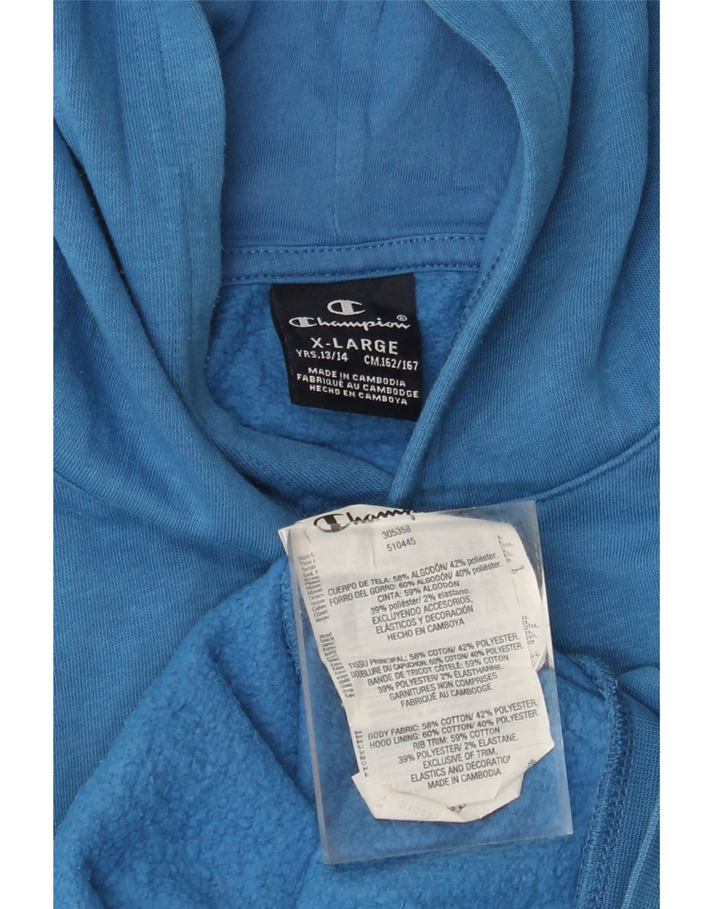 Джемпер с капюшоном CHAMPION для мальчиков с рисунком, 13–14 лет, размер XL, синий хлопок