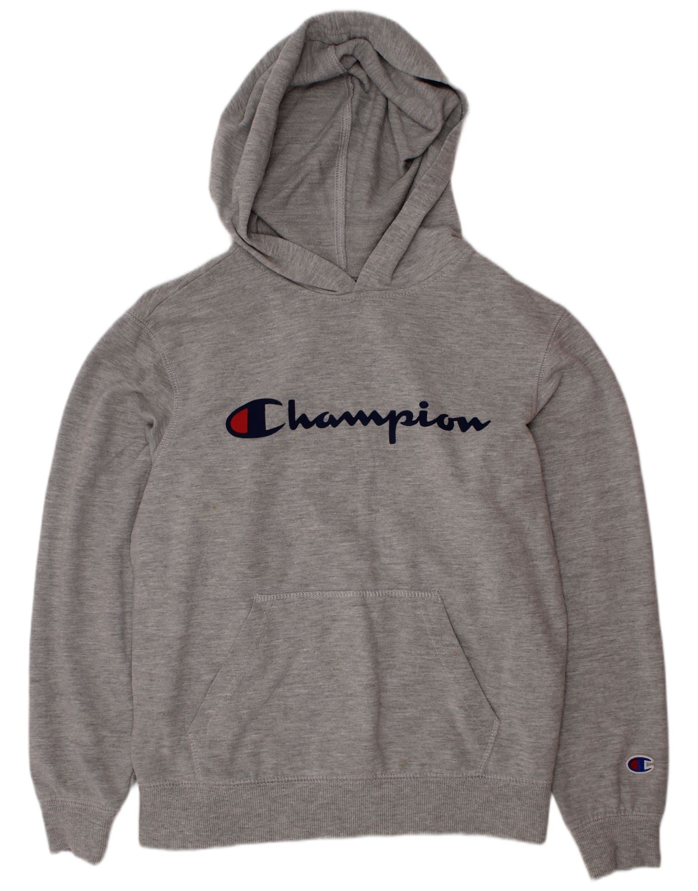 Джемпер с капюшоном CHAMPION для мальчиков 9–10 лет, хлопковый средний серый цвет в крапинку
