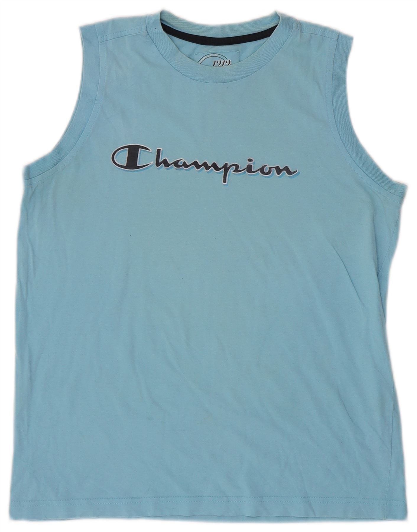- Описание ИИ: Майка с графическим рисунком для мальчиков Champion изготовлена из легкого хлопкового трикотажа синего цвета. Имеет классический круглый вырез и фасон без рукавов. Регулярная посадка обеспечивает комфорт и легкость движений. На груди напечатан заметный логотип Champion. Этот фасон пуловера создает удобный и спортивный вид.