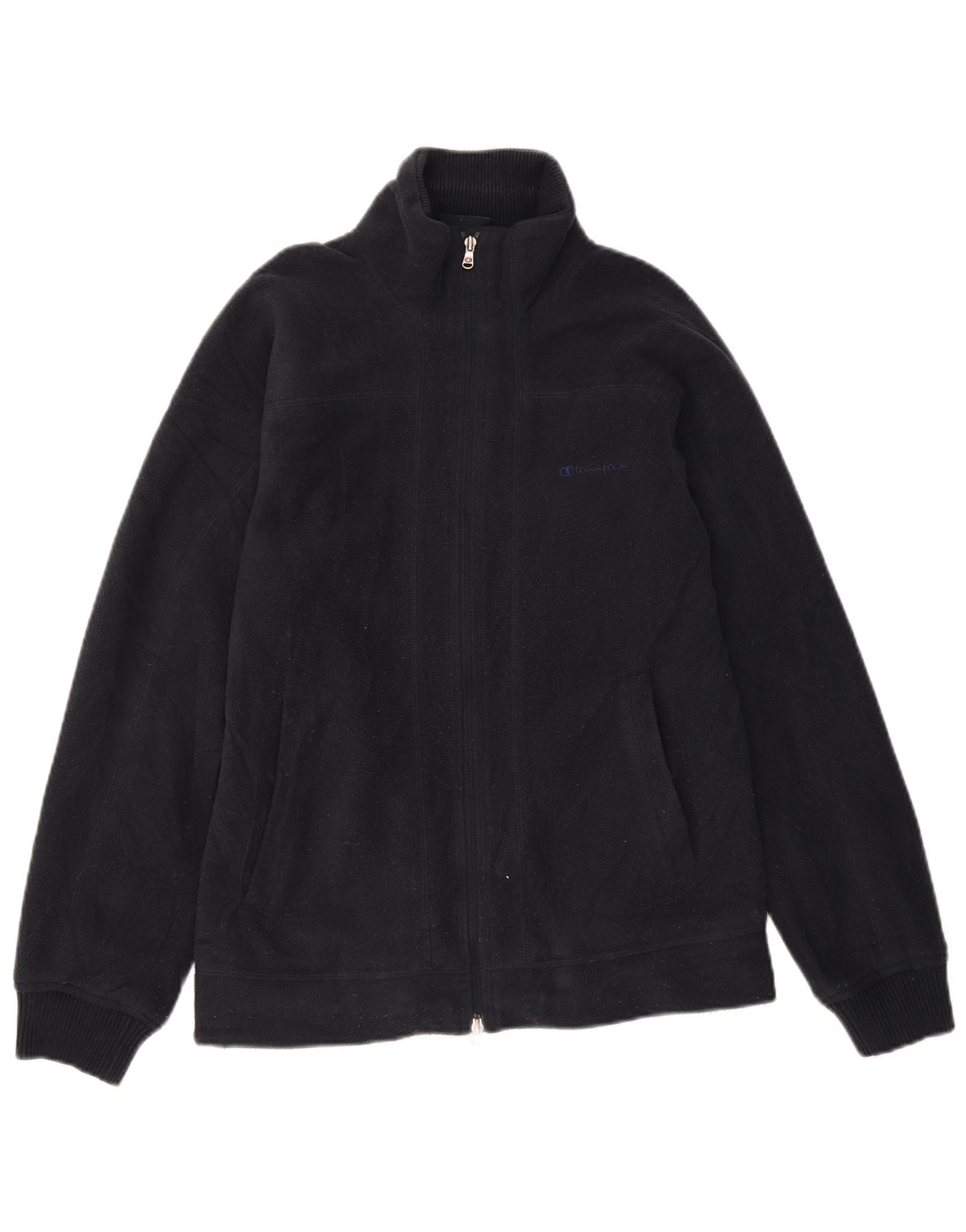 CHAMPION Mens Fleece Jacket UK 38 Medium Navy Blue Polyester