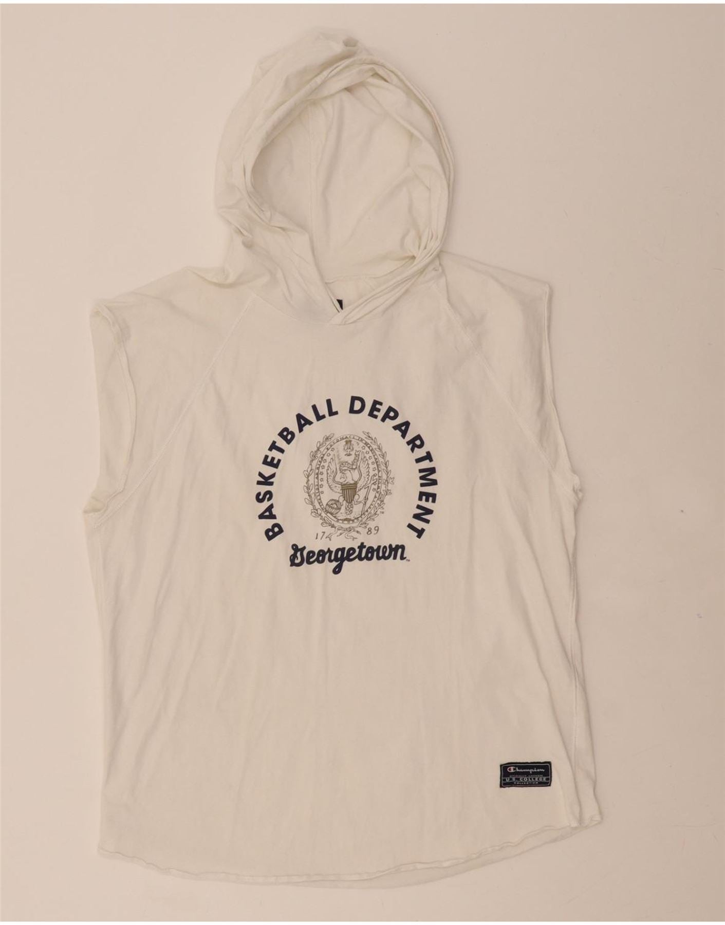 CHAMPION Mens Georgetown Hooded Graphic Vest Top XL White Cotton