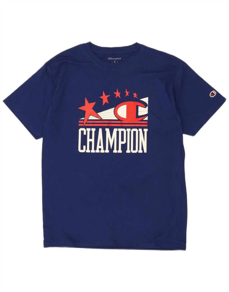 Мужская футболка с рисунком CHAMPION, топ среднего размера, темно-синий, хлопок