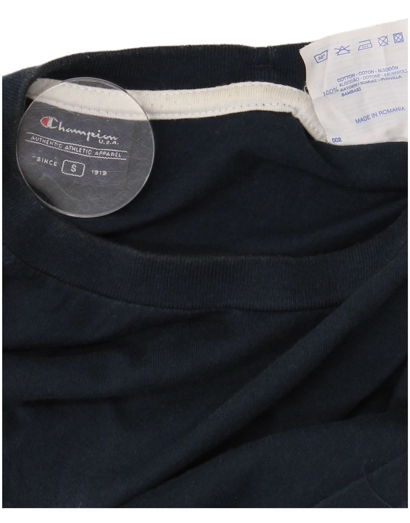 Home > Винтажная одежда чемпионов > Мужской > Футболки > Мужская футболка с рисунком CHAMPION, маленькая, темно-синяя, хлопковая