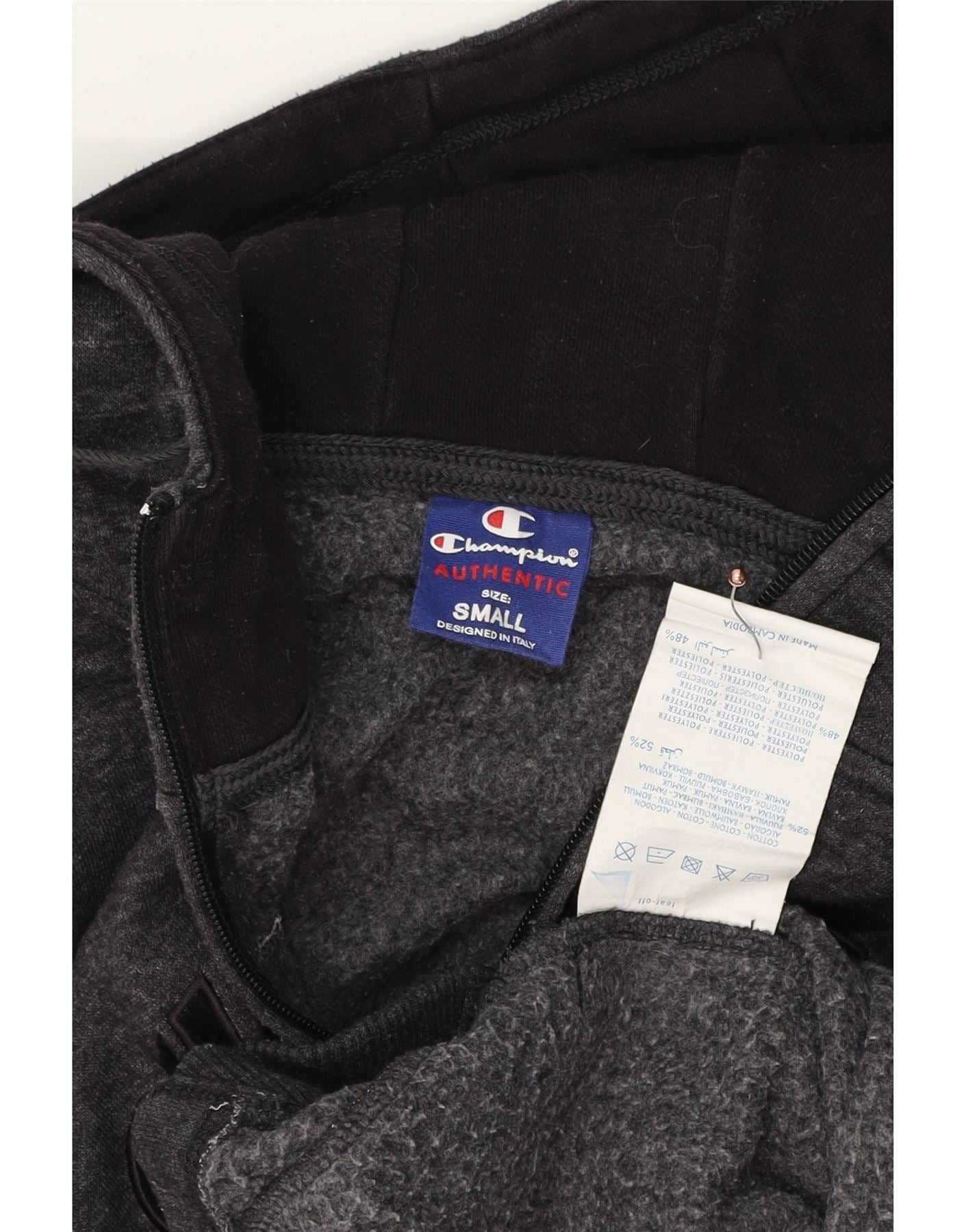 Home > Винтажная одежда чемпионов > Мужской > Толстовка с капюшоном > Мужской свитер с капюшоном и молнией CHAMPION, маленький серый хлопковый крапчатый свитер