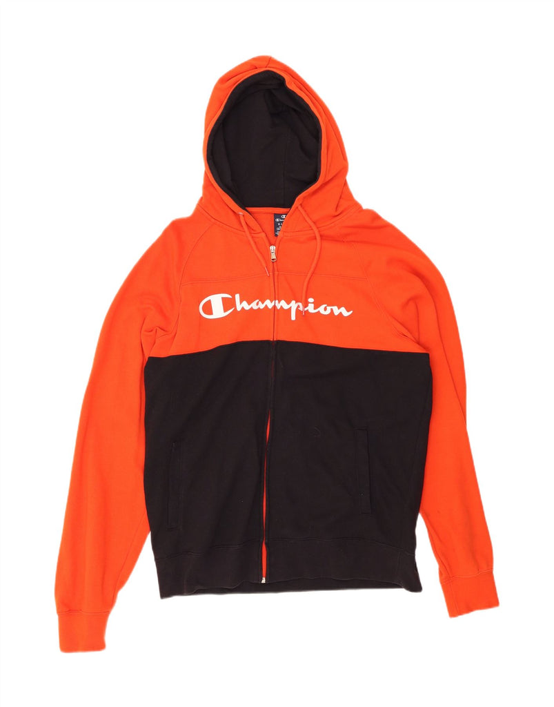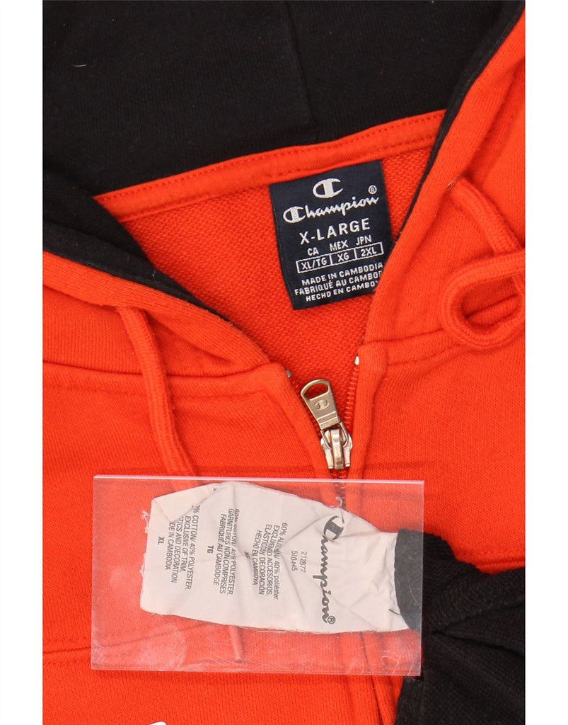 CHAMPION Мужской свитер с капюшоном на молнии с графическим рисунком XL, оранжевый цветной блок, хлопок