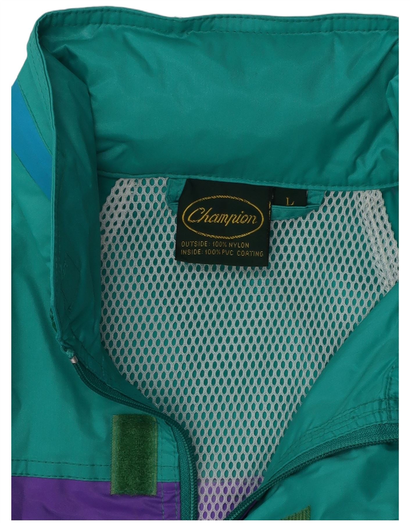 Мужская дождевик CHAMPION с капюшоном UK 40, большой бирюзовый нейлон с цветными блоками