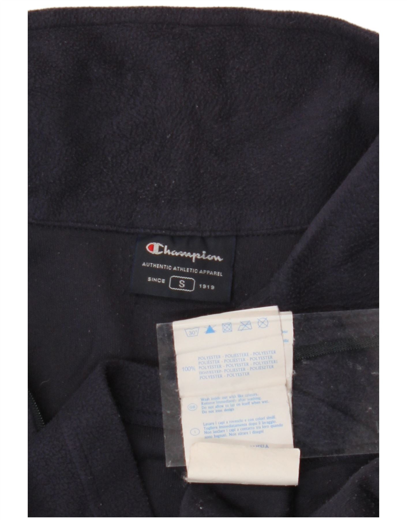 CHAMPION Mens Zip Neck Fleece Jumper Small Navy Blue Polyester
