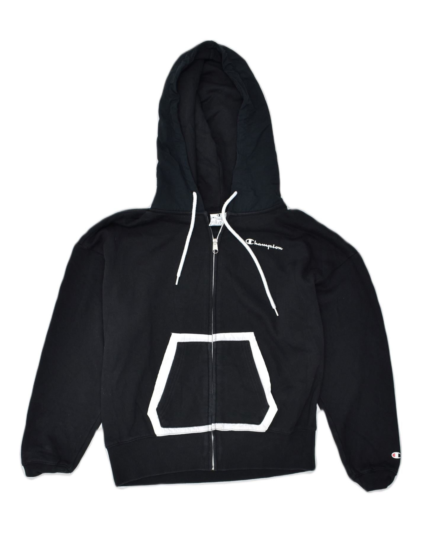 Home > Винтажная одежда чемпионов > Женский > Толстовка с капюшоном > Женский свитер с капюшоном на молнии CHAMPION UK 14, большой черный хлопок