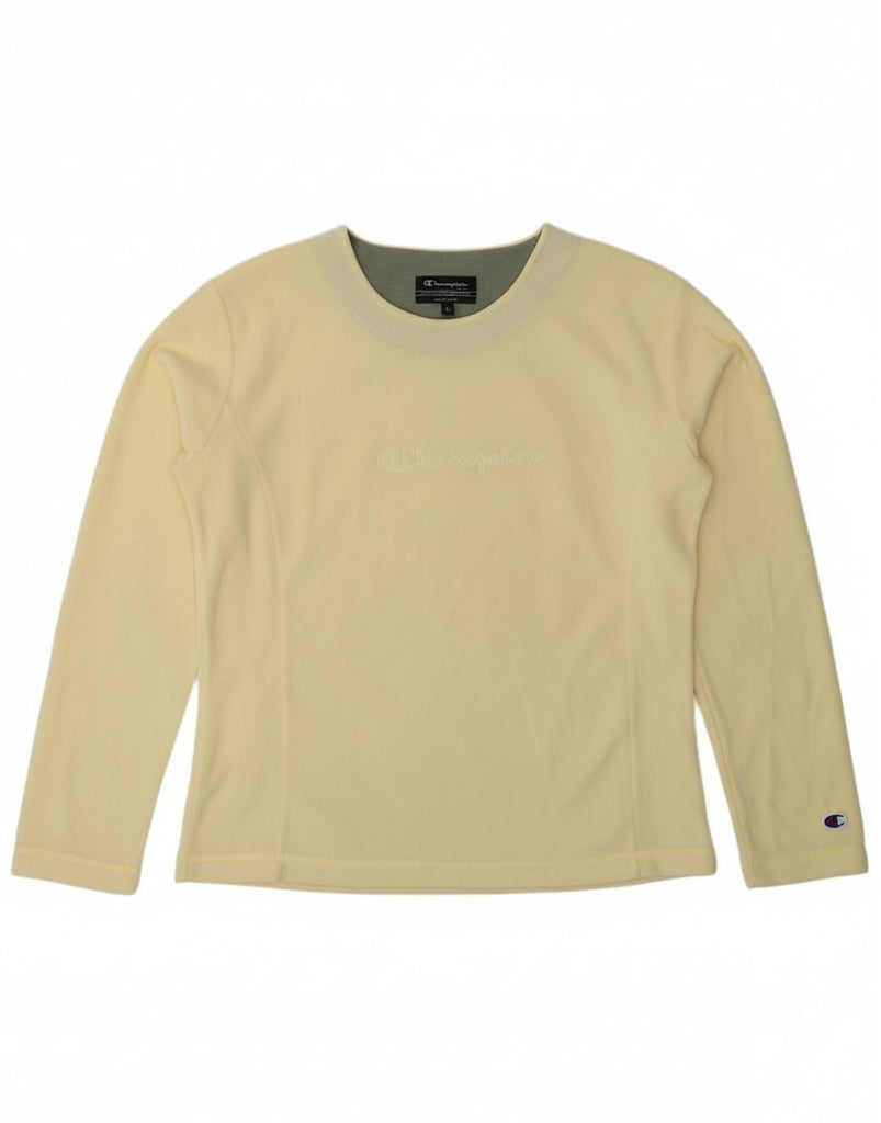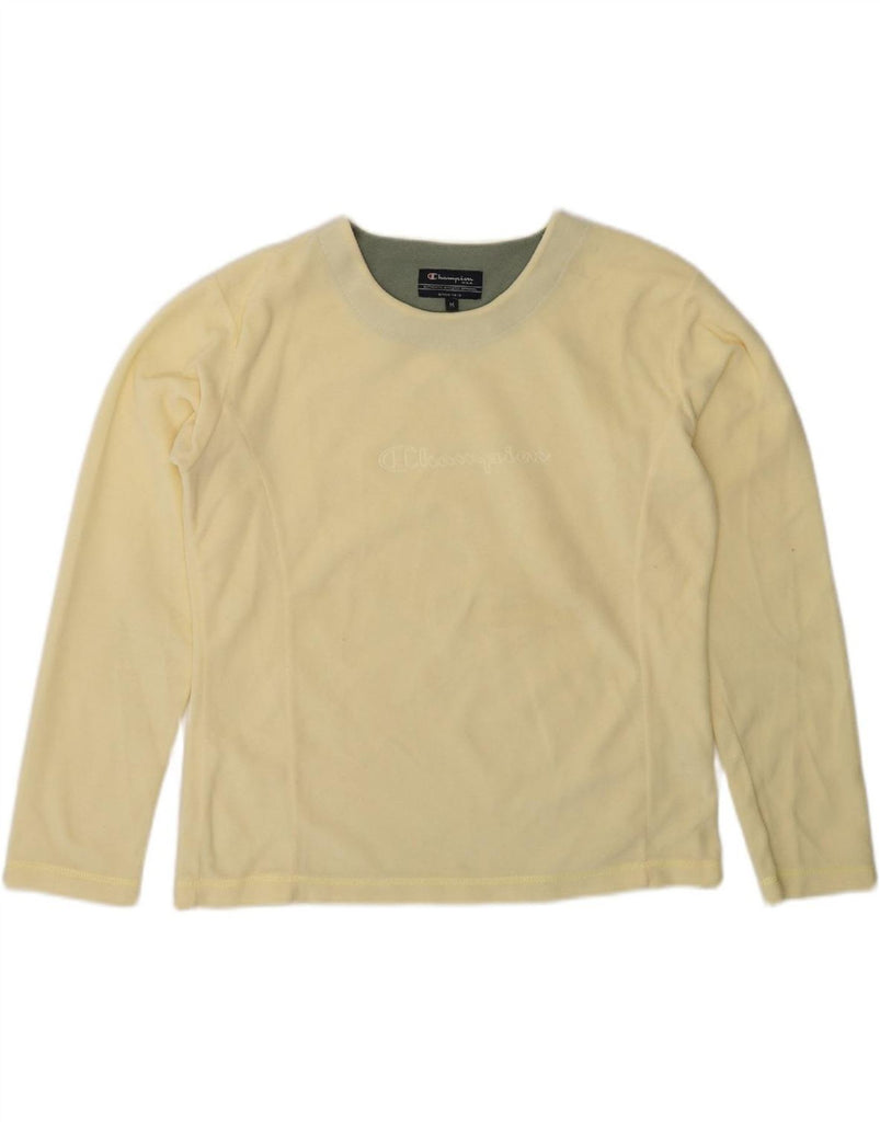CHAMPION Womens Graphic Fleece Jumper UK 12 Medium Yellow Polyester