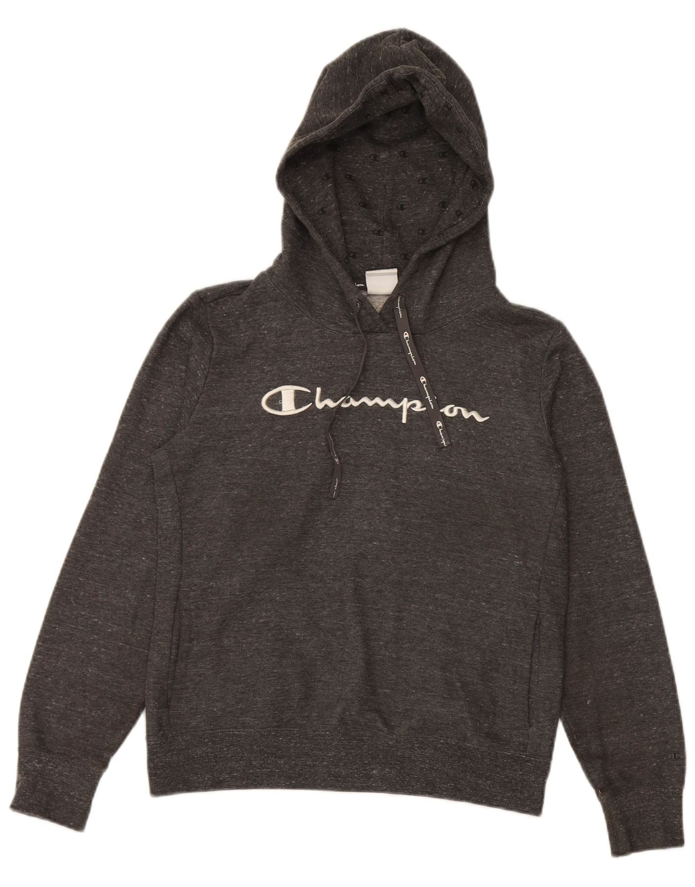 CHAMPION Womens Graphic Hoodie Jumper UK 14 Medium Grey Flecked Cotton