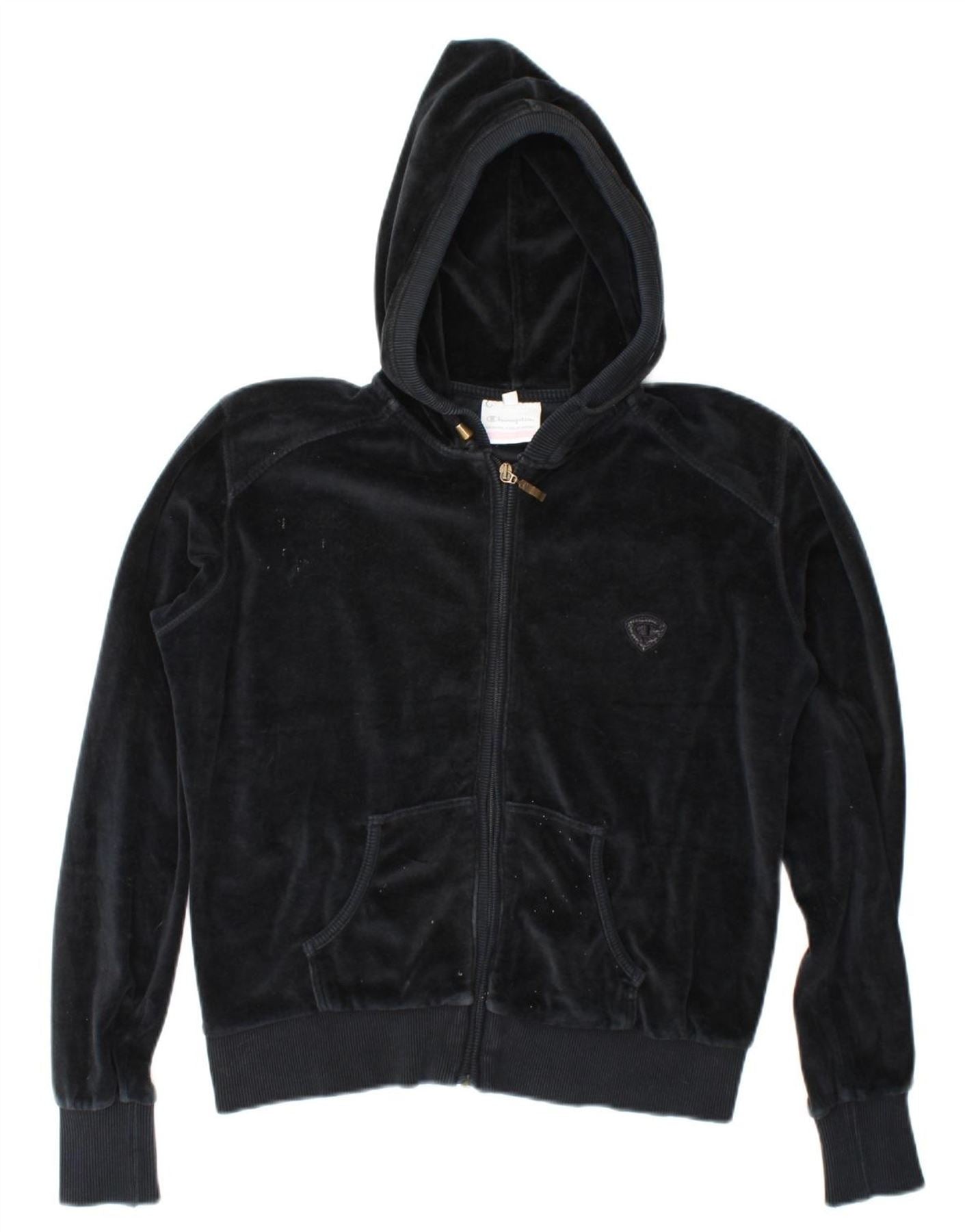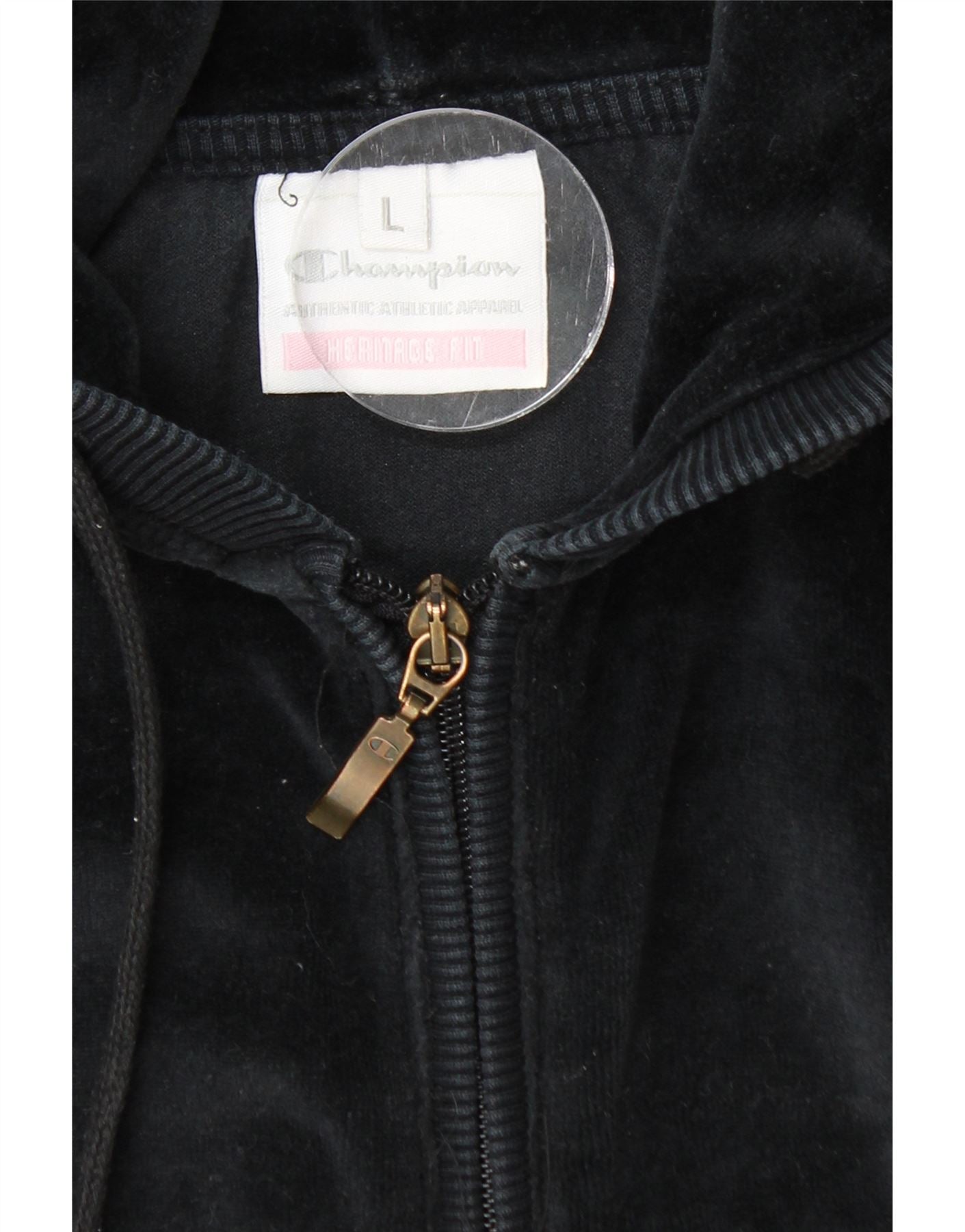 CHAMPION Womens Heritage Fit Velvet Zip Hoodie Sweater UK 16 Large Black