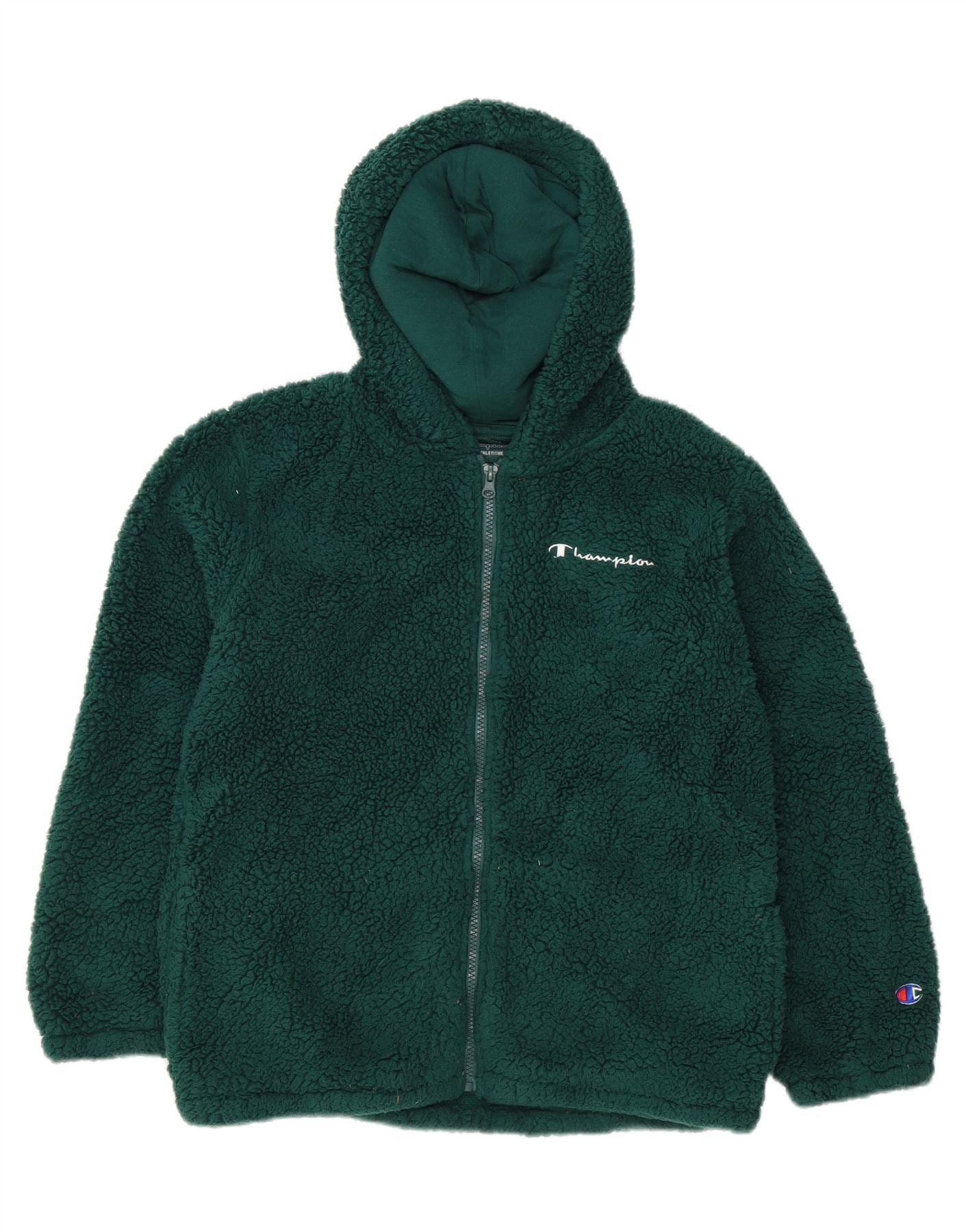 CHAMPION Womens Hooded Fleece Jacket UK 18 XL Green Polyester