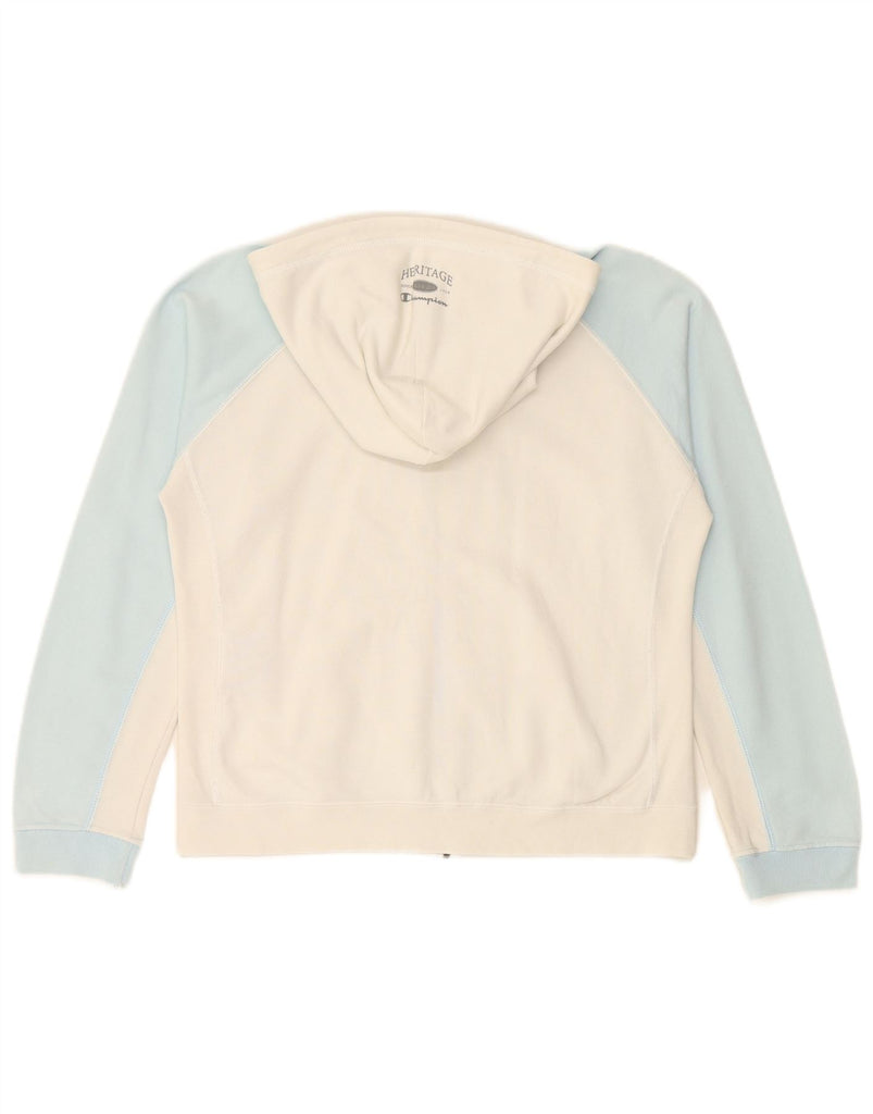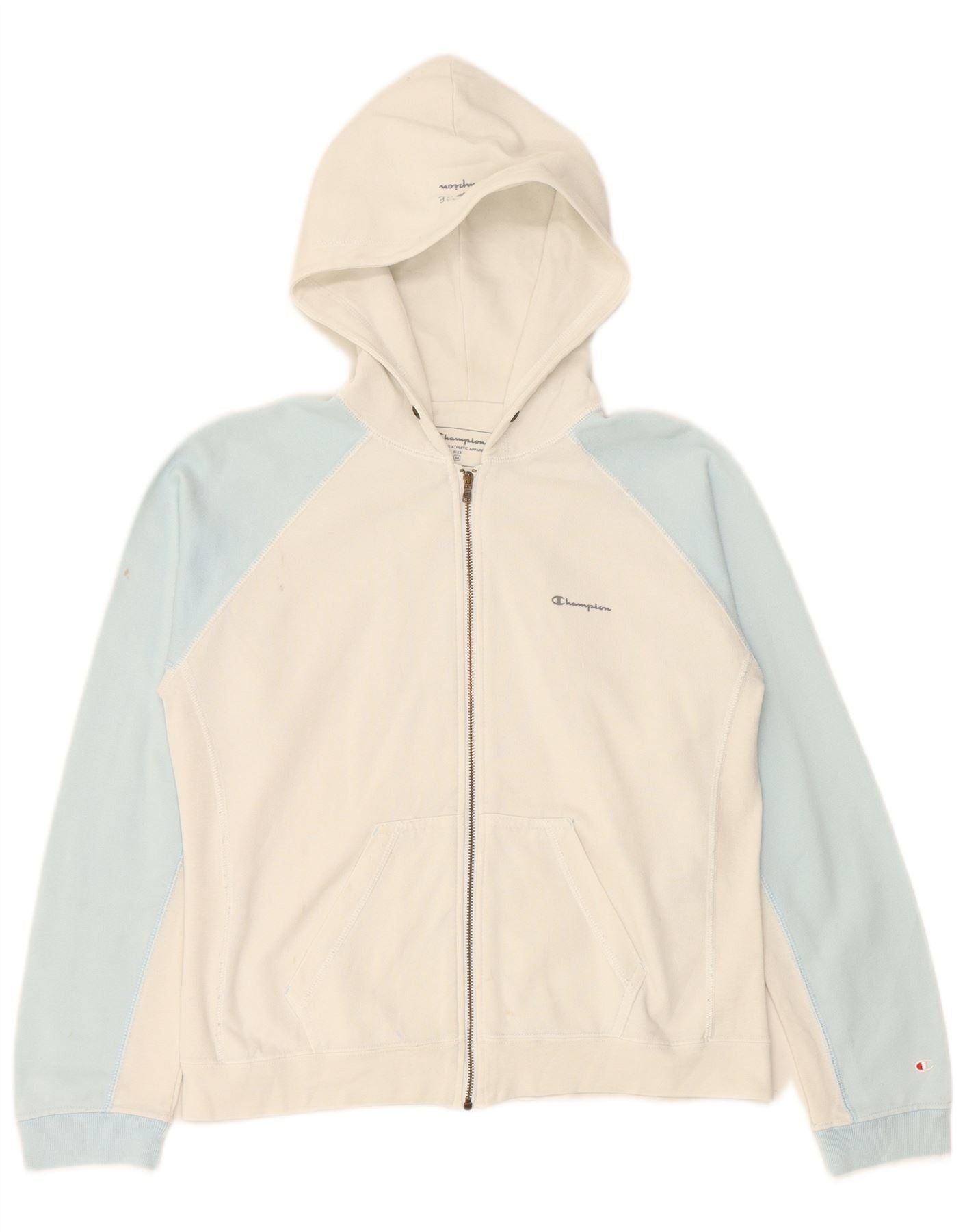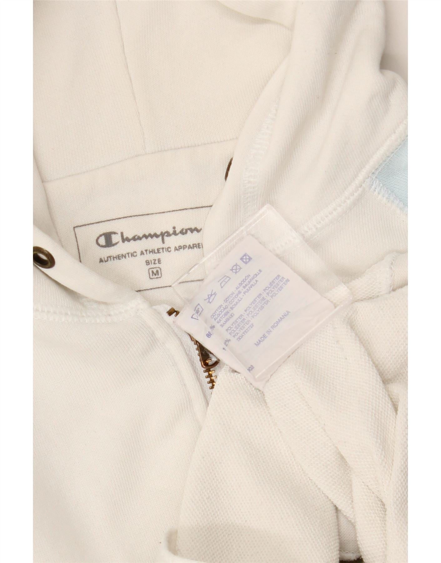 CHAMPION Womens Zip Hoodie Sweater UK 12 Medium White Colourblock Cotton