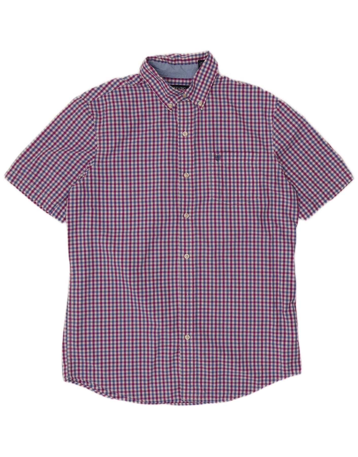 CHAPS Мужская рубашка с коротким рукавом Easy Care среднего синего цвета в мелкую клетку, хлопок