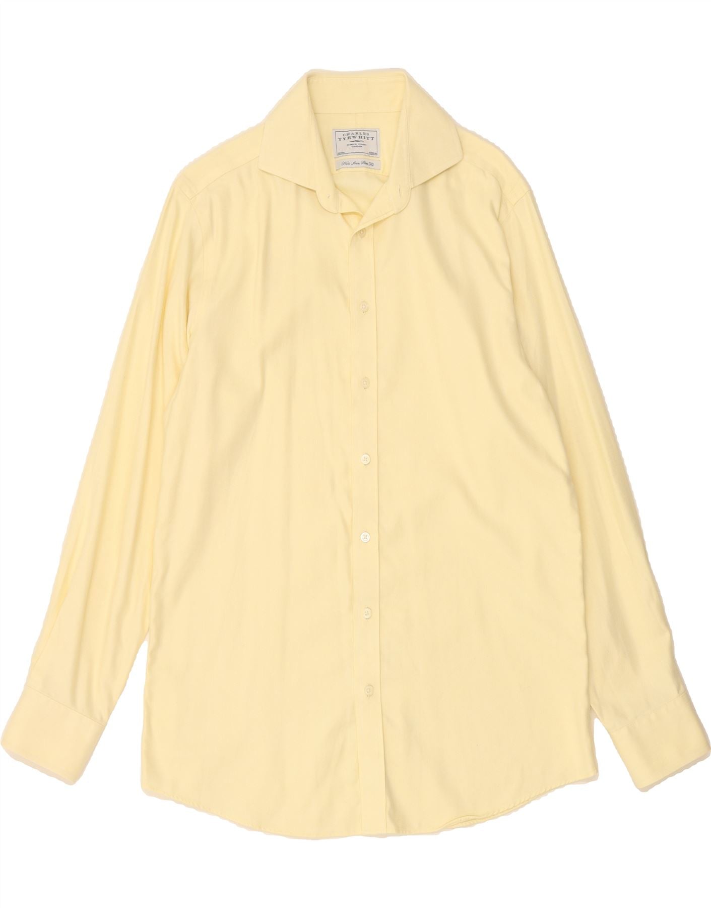 CHARLES TYRWHITT Mens Slim Fit Flannel Shirt Size 41 Medium Yellow Cotton